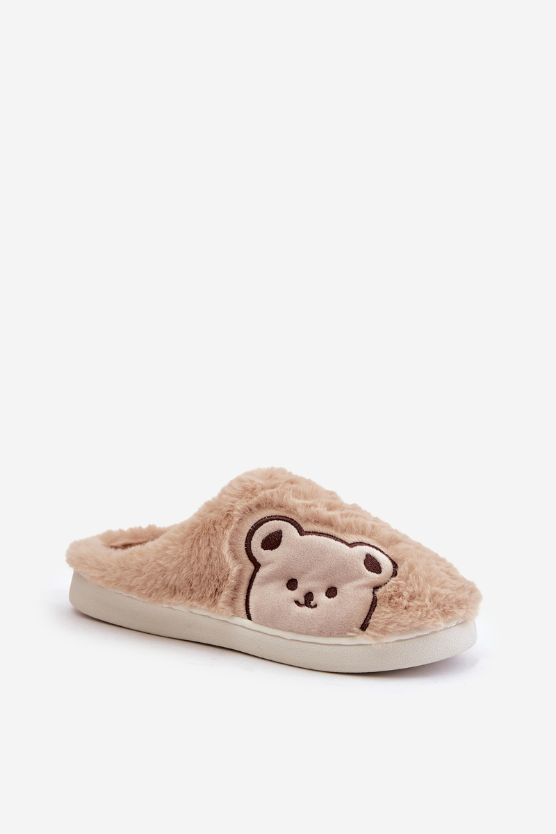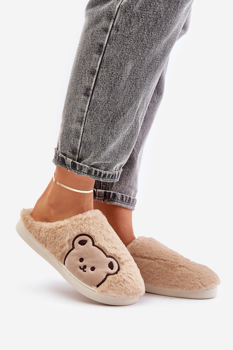 Kapcie Futrzane Z Misiem Damskie Beżowe Fiorinella