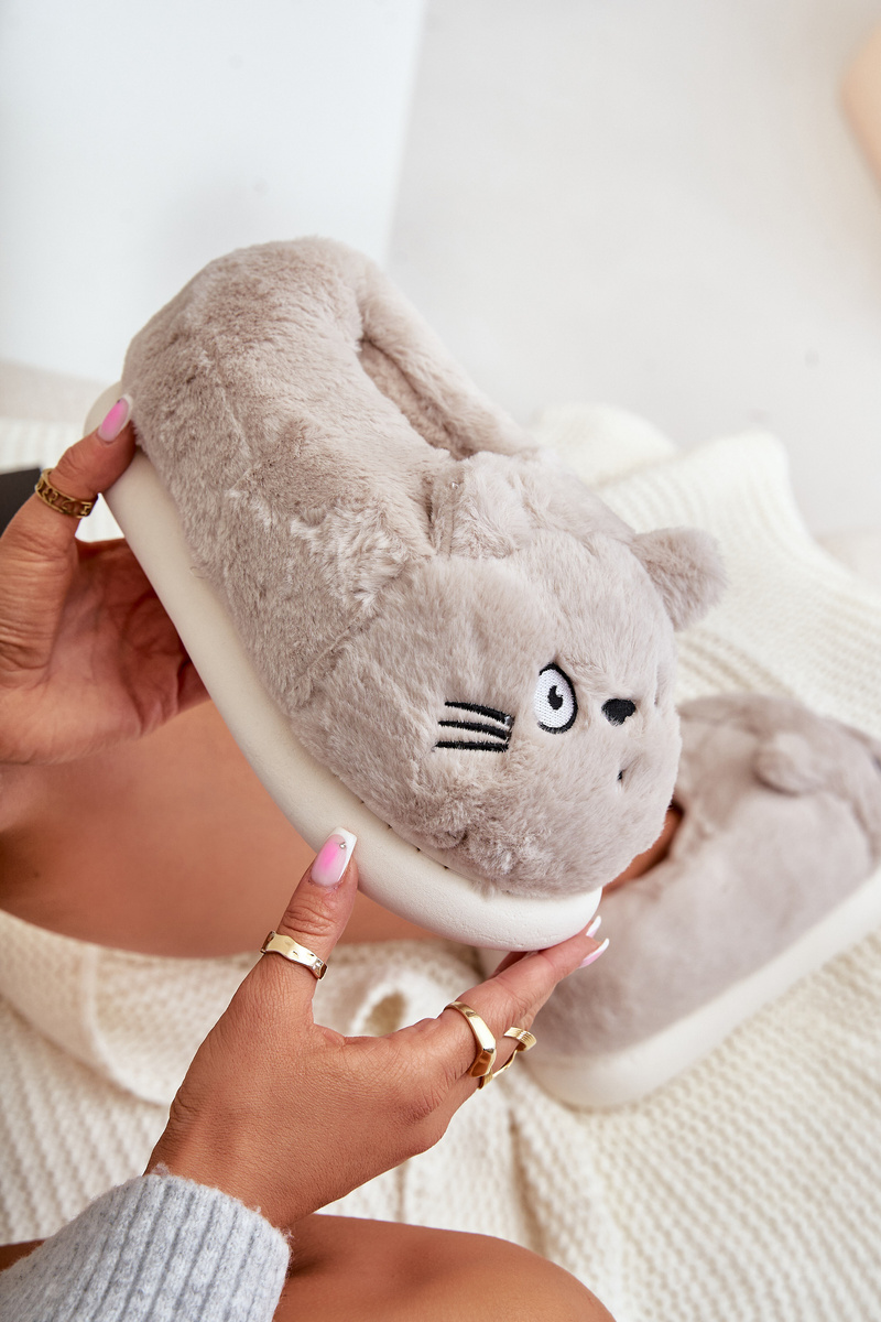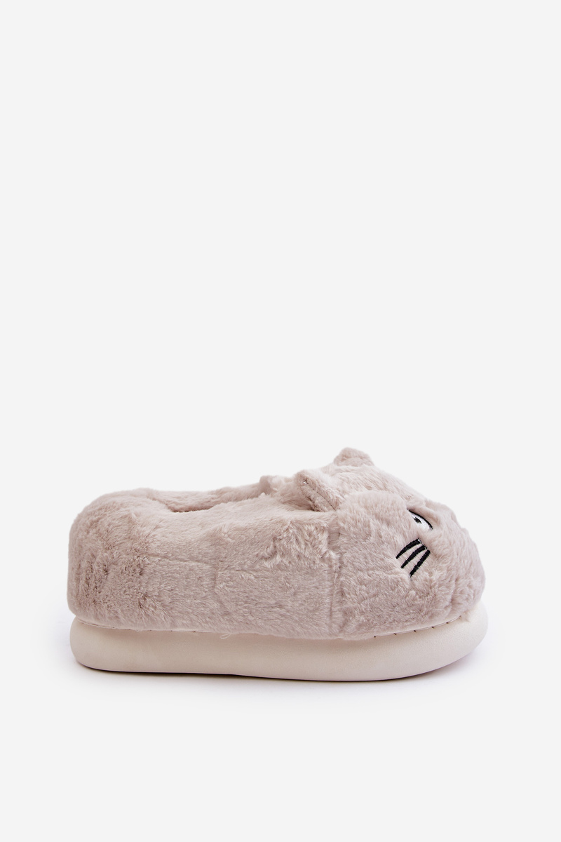 Kapcie Futrzane Z Motywem Kotka Damskie Beżowe Iriviane