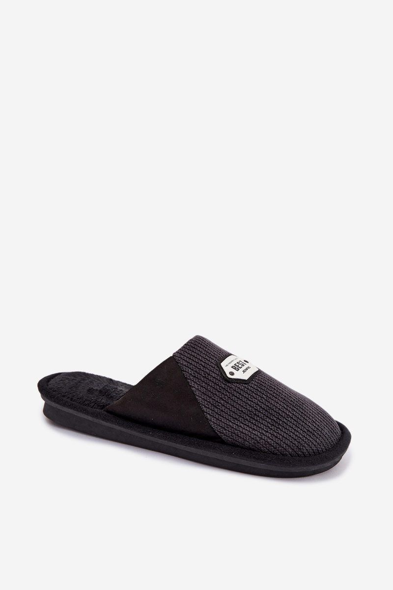 Kapcie Męskie Z Naszywką Czarne Presine