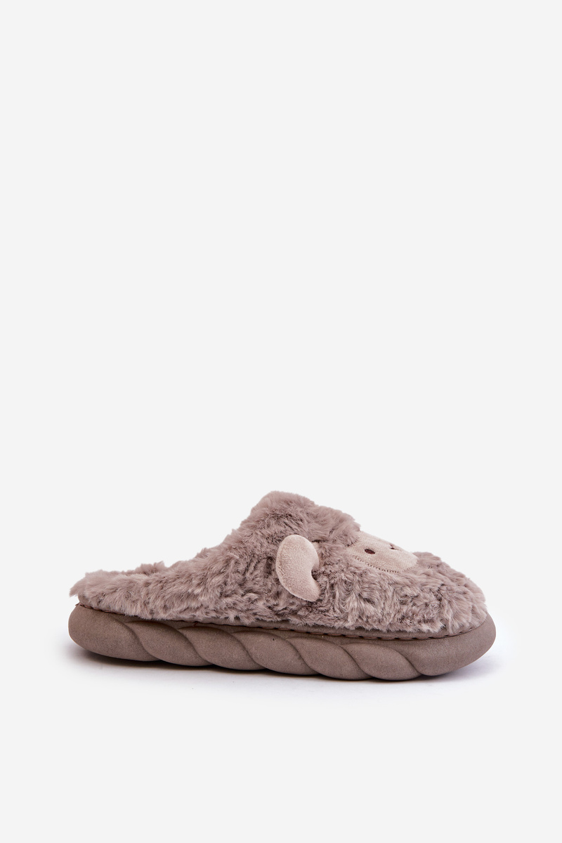 Kapcie Owieczki Damskie Futrzane Ciemnobeżowe Phaeia