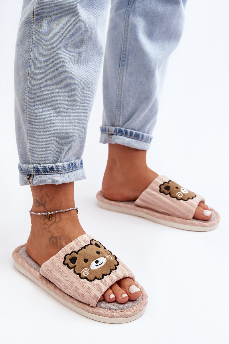 Kapcie Wsuwane Damskie Z Misiem Beżowe Demare 23PA11-4865
