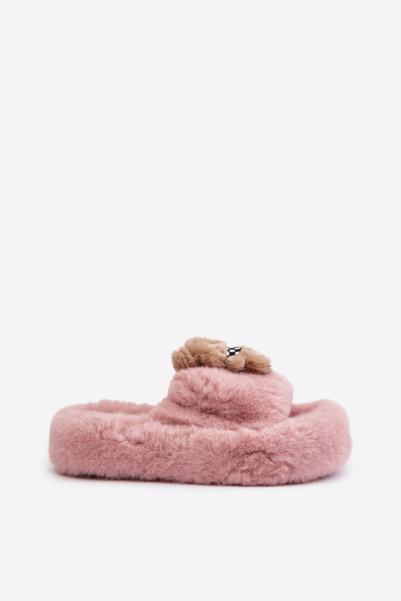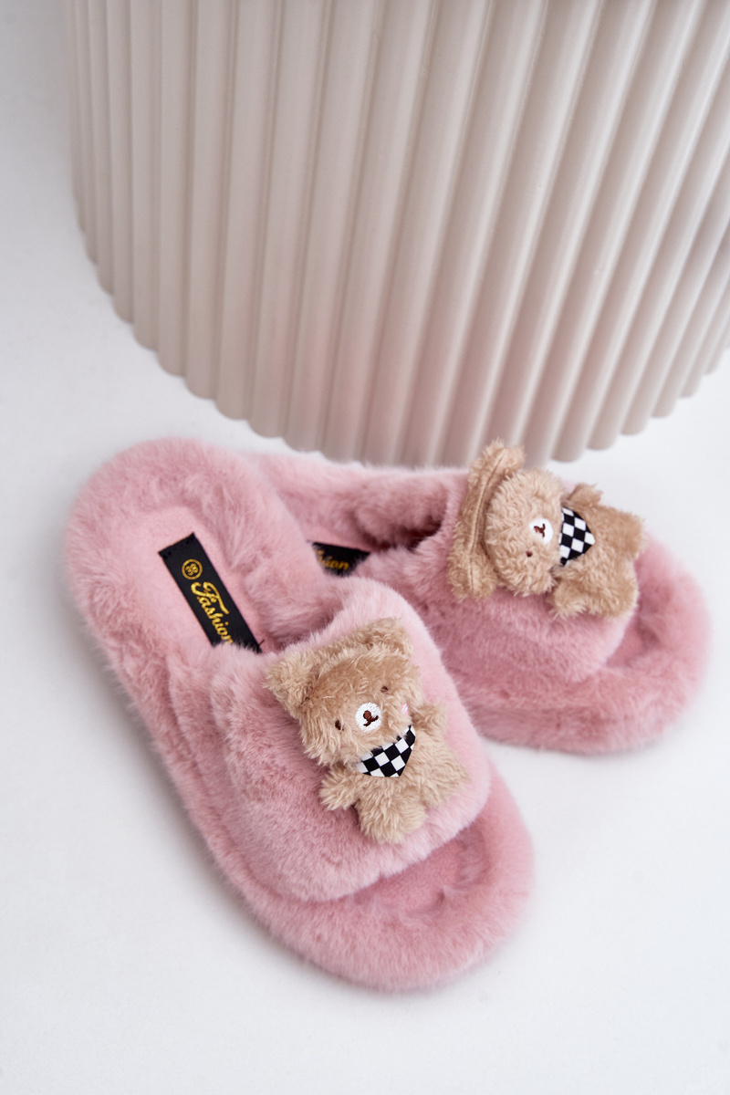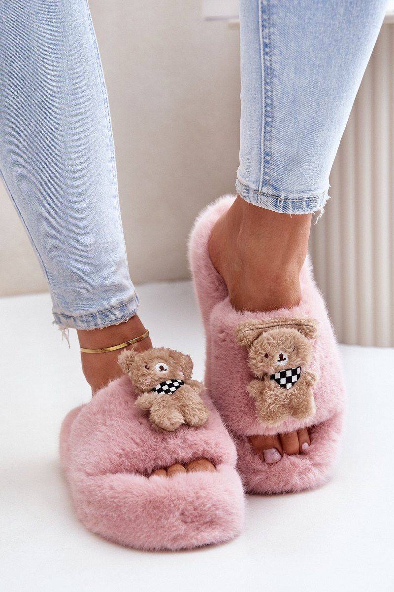 Kapcie Z Misiem Futrzane Damskie Różowe Romania