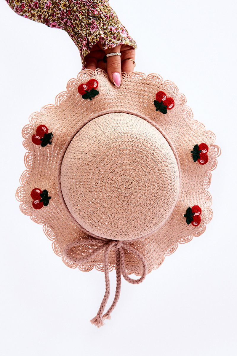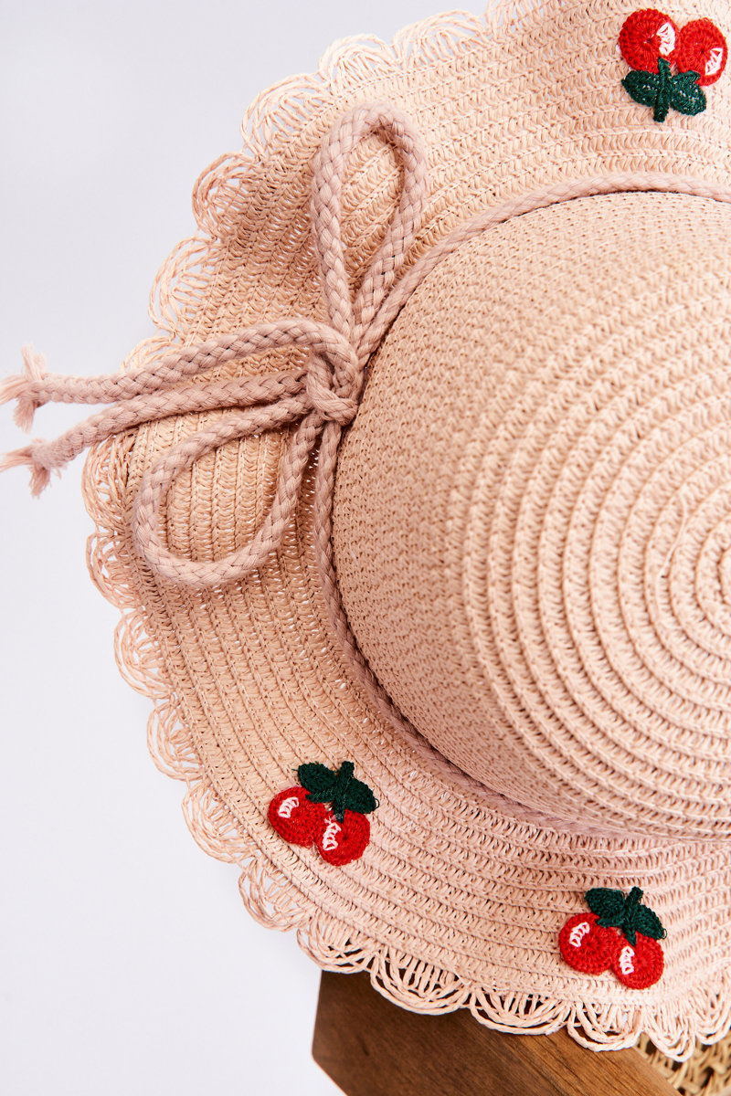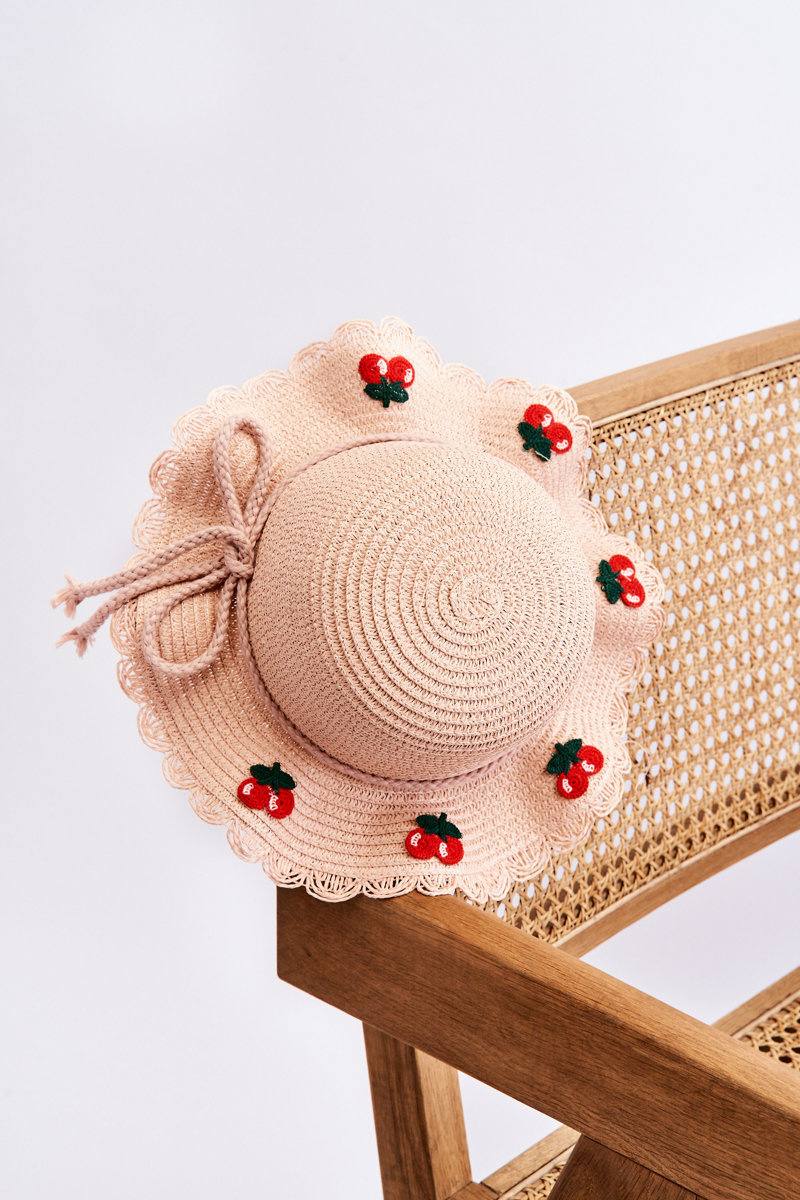 Odpowiednie nakrycie głowy podczas upalnych dni to podstawa! Pamiętaj o tym! Kapelusze świetnie sprawdzą się podczas wakacji czy urlopu, gdy słońce doskwiera przez długi czas. Właśnie takie nakrycie głowy powinno znaleźć się w szafie Twojego malucha! Produkt wykonany jest w 100% z papieru. Ten modny kapelusz dziecięcy posiada falowane rondo oraz ozdobne wisienki na rondzie. W miejscu zdobiny znajduje się sznureczek zawiązany na kokardkę. W środku kapelusz posiada sznureczek umożliwiający odpowiednie dopasowanie kapelusza.