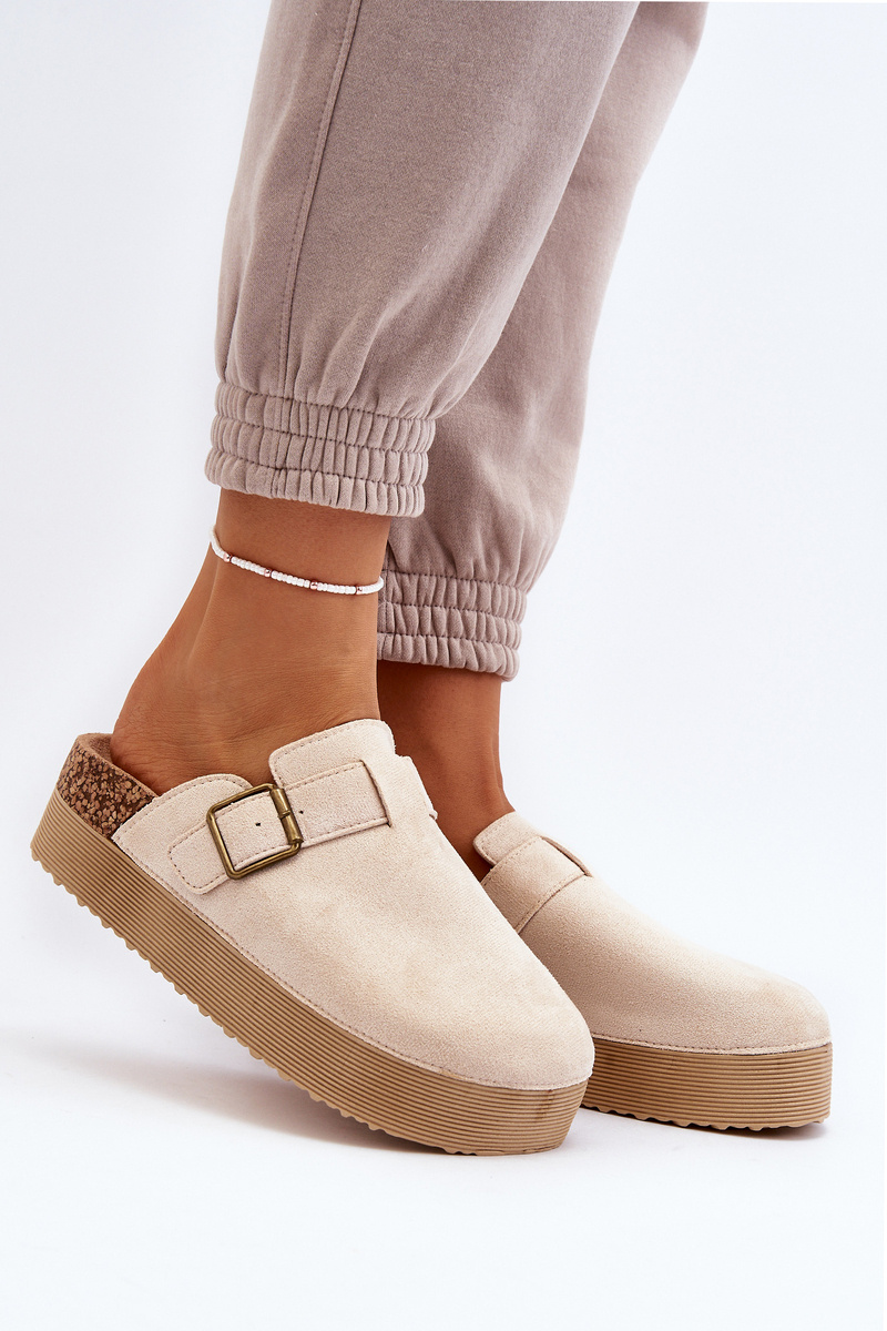 Klapki Chodaki Damskie Platforma Klamra Jasnobeżowe Jorffia