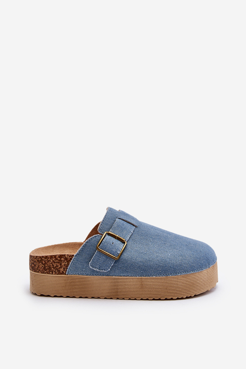 Klapki Chodaki Jeansowe Damskie Platforma Klamra Niebieskie Jorffia