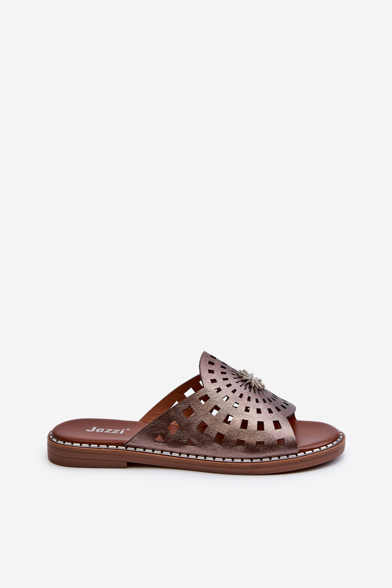 Klapki Damskie Błyszczące Płaski Obcas Ozdoba Miedziane Ebirena RMR226-4