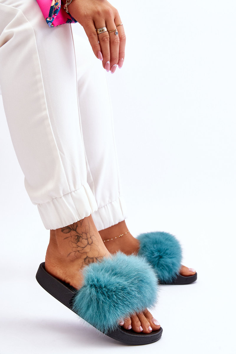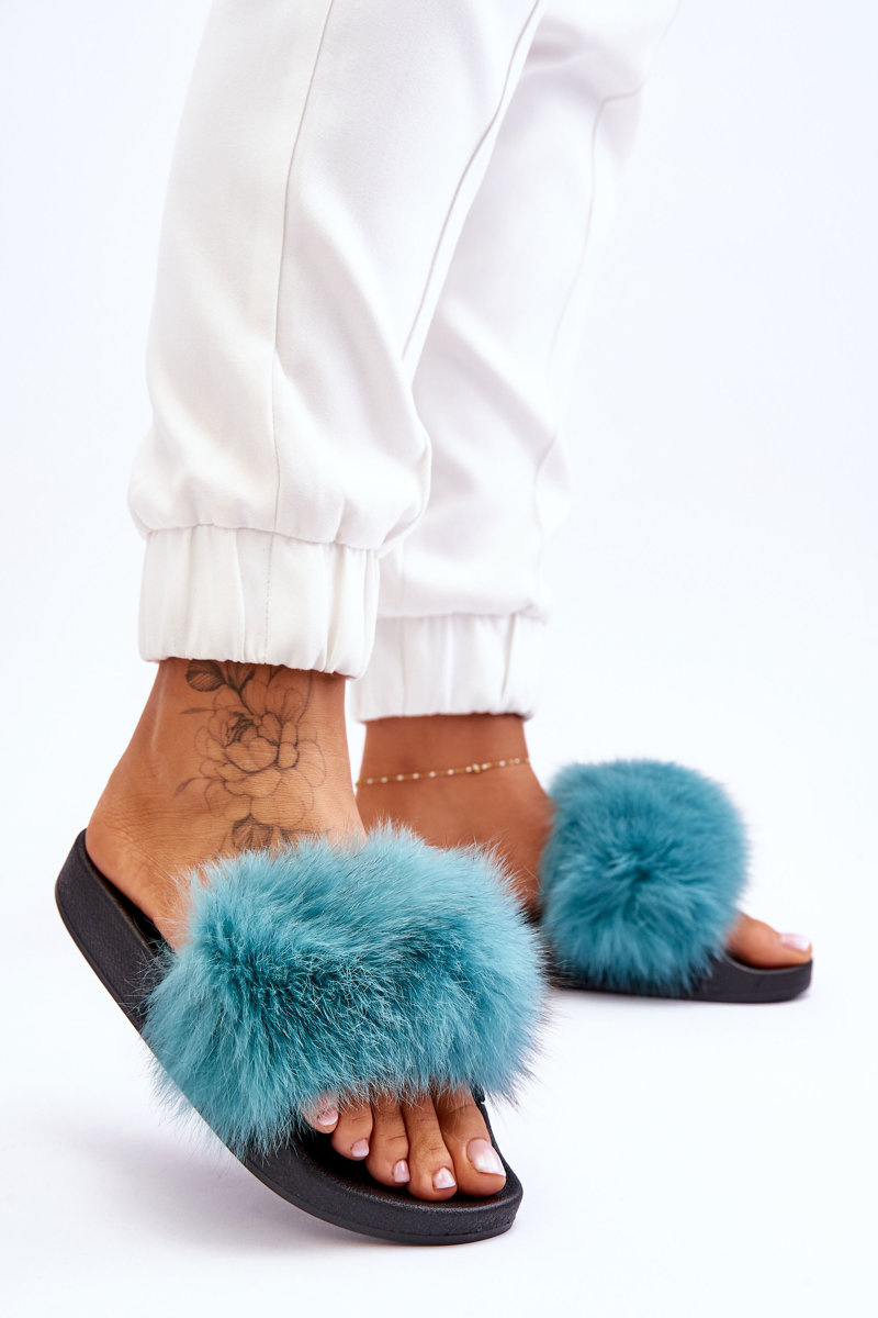 Klapki Damskie Gumowe Futerko Turkusowe Lucrece