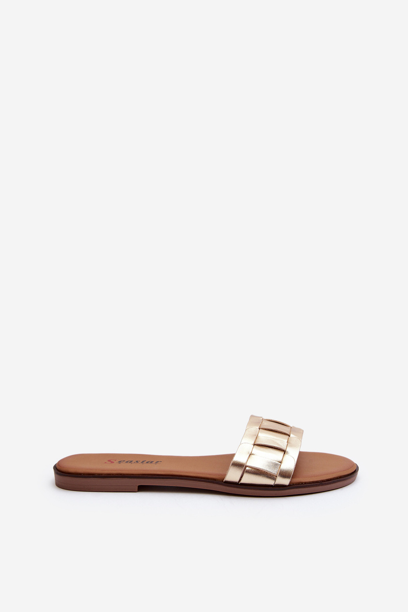 Klapki Damskie Klasyczne Płaski Obcas Złote Namrita PS03