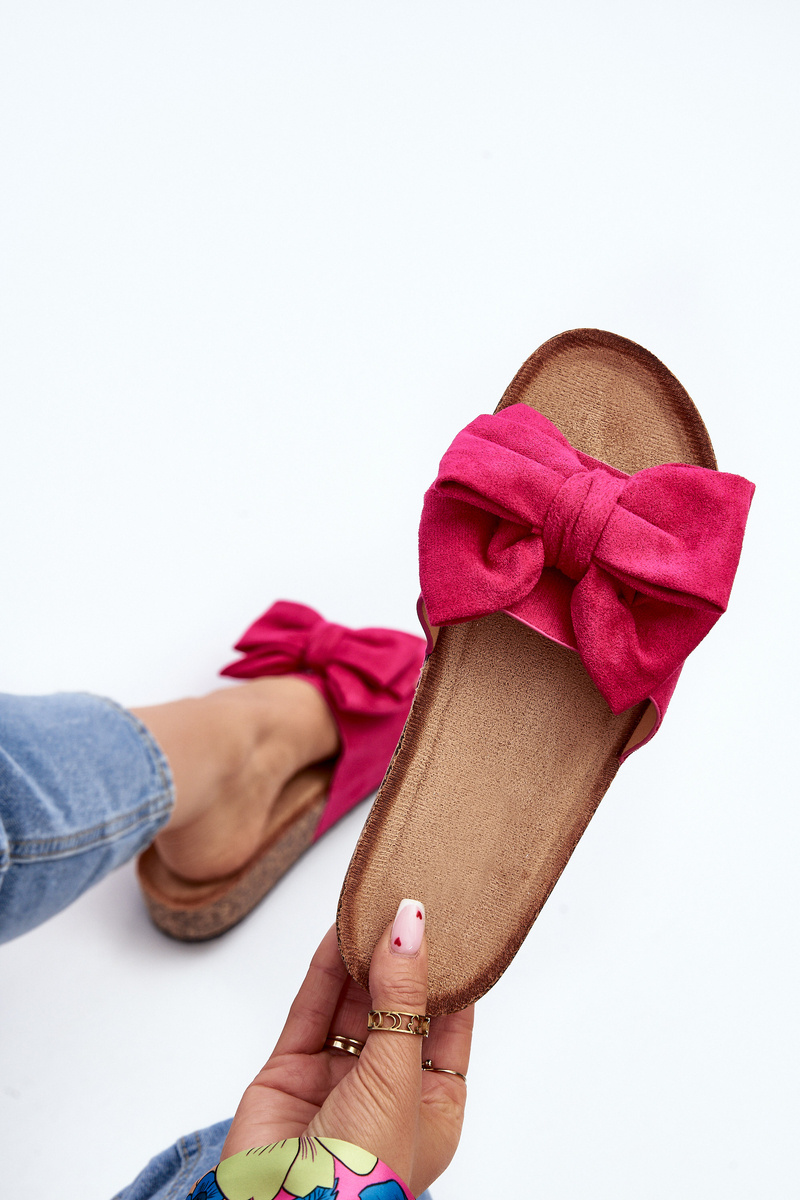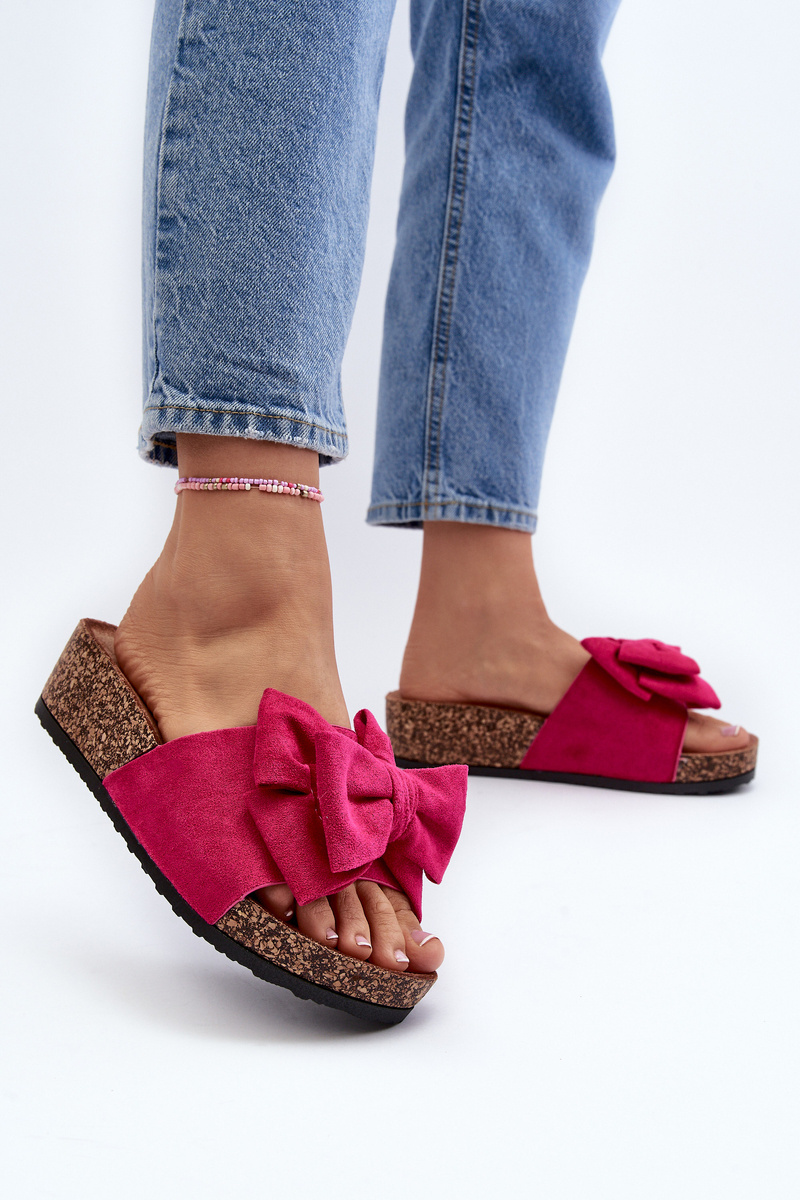 Klapki Damskie Korkowa Platforma Kokarda Fuksja Tarena CK273P