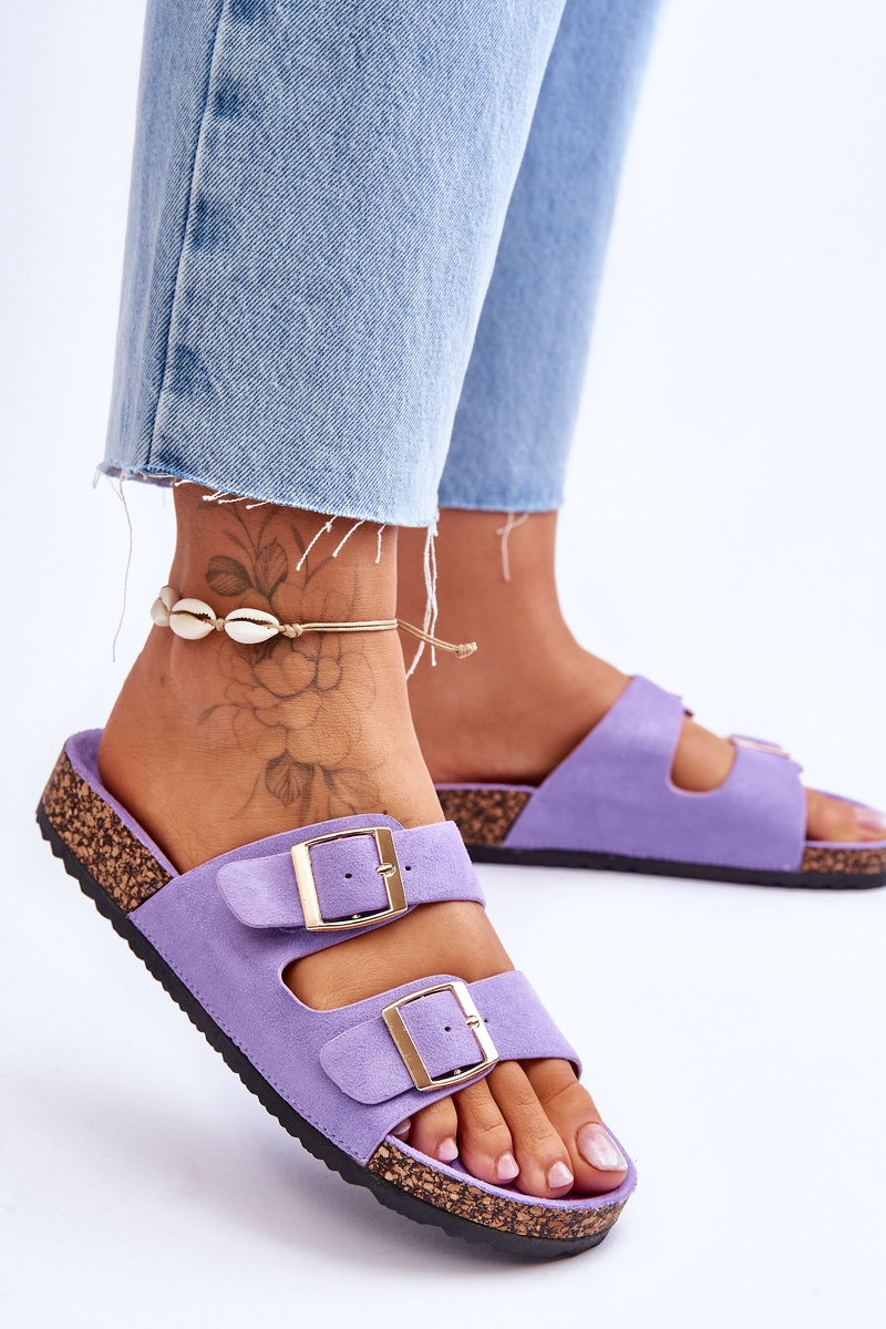 Klapki Damskie Korkowa Platforma Paski Fioletowe Doretta