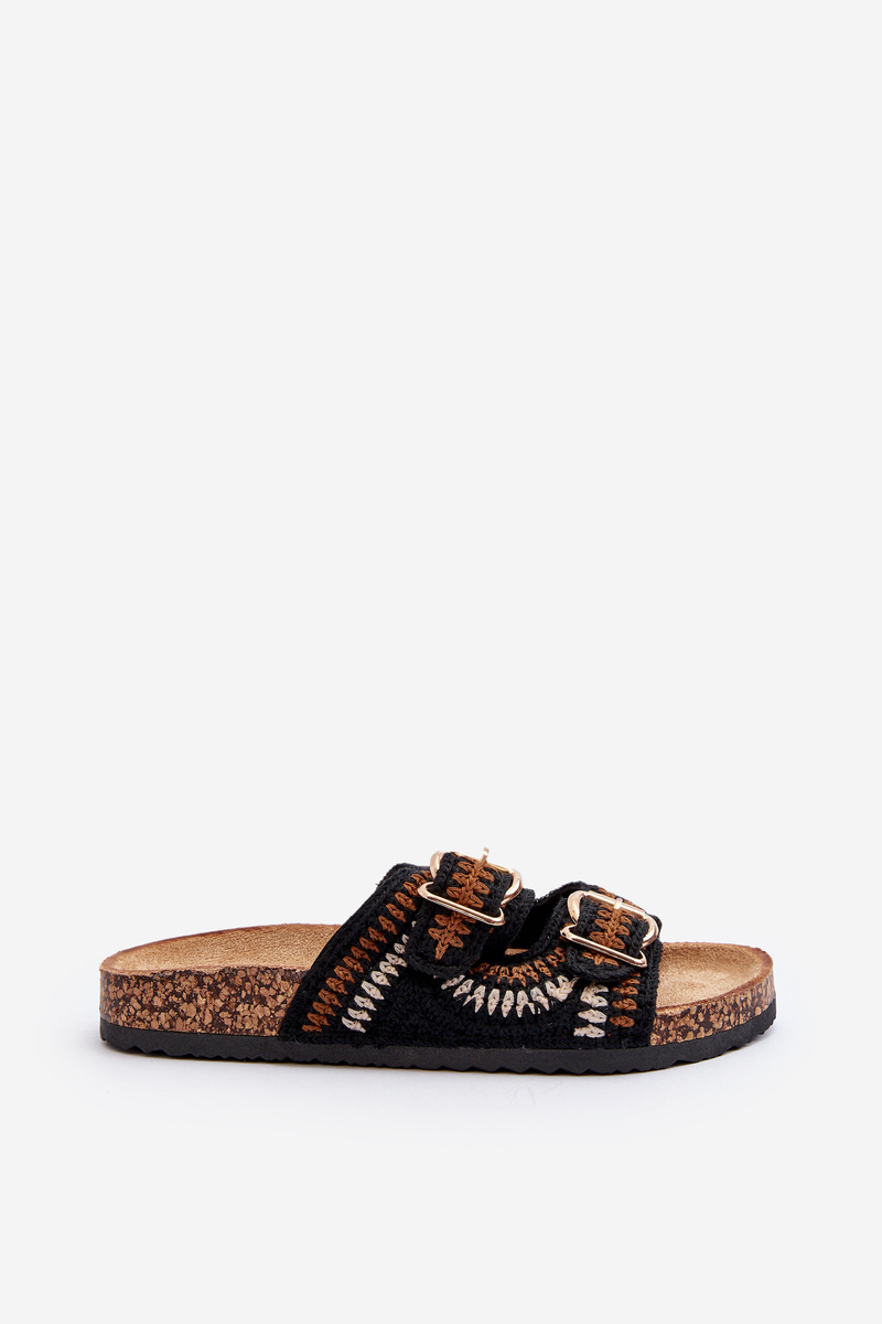 Klapki Damskie Korkowa Podeszwa Czarne Fannea SS-132