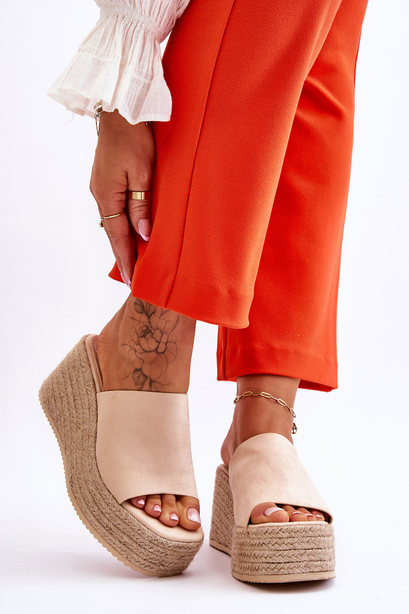Klapki Damskie Koturn Platforma Beżowe Ysabel