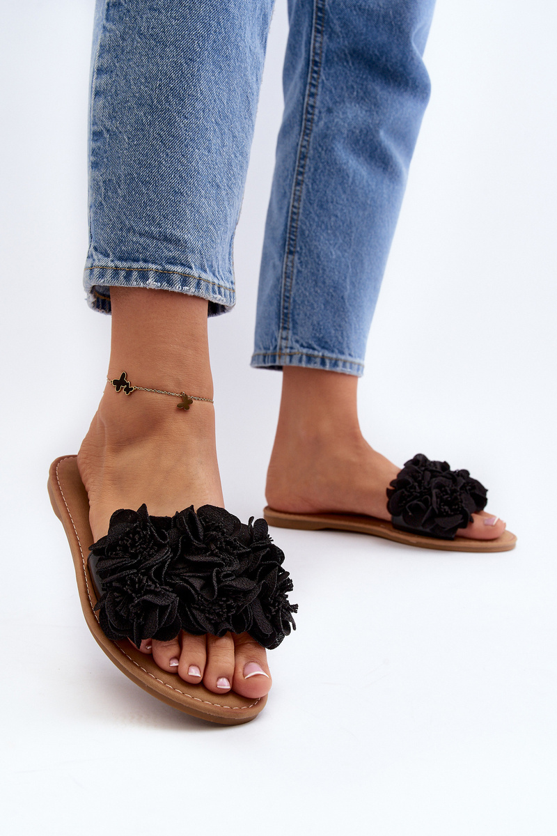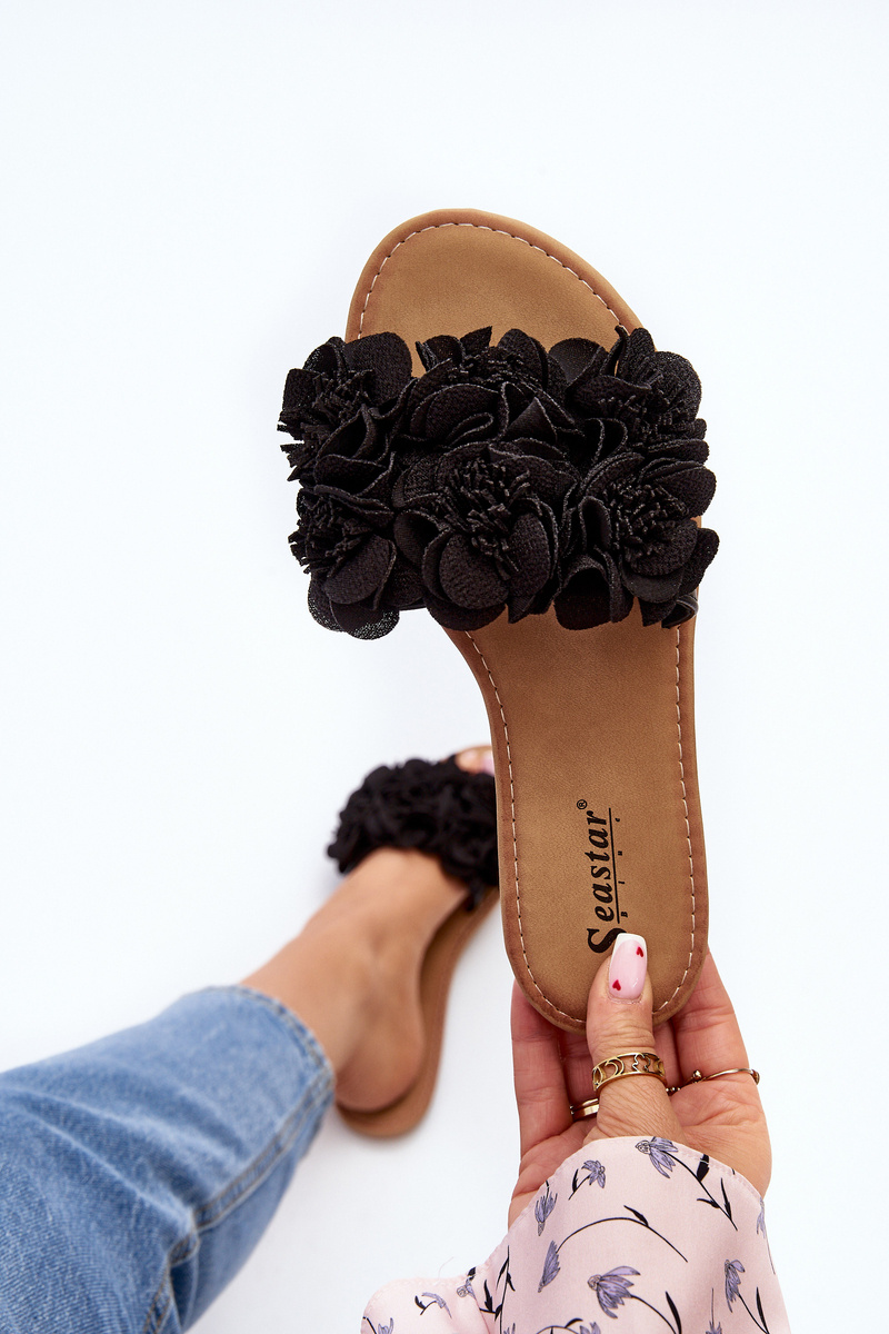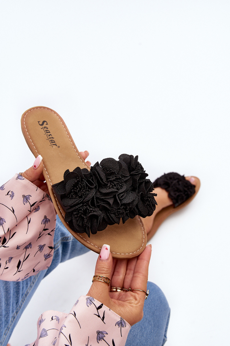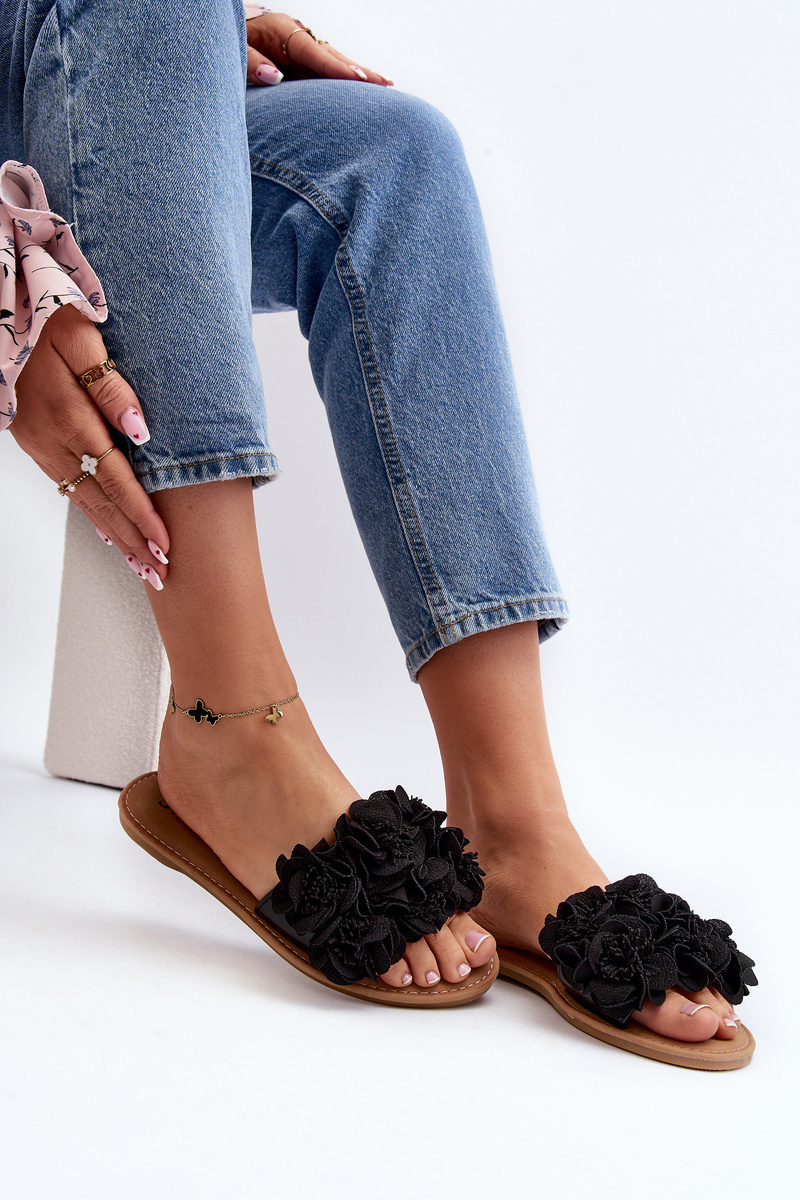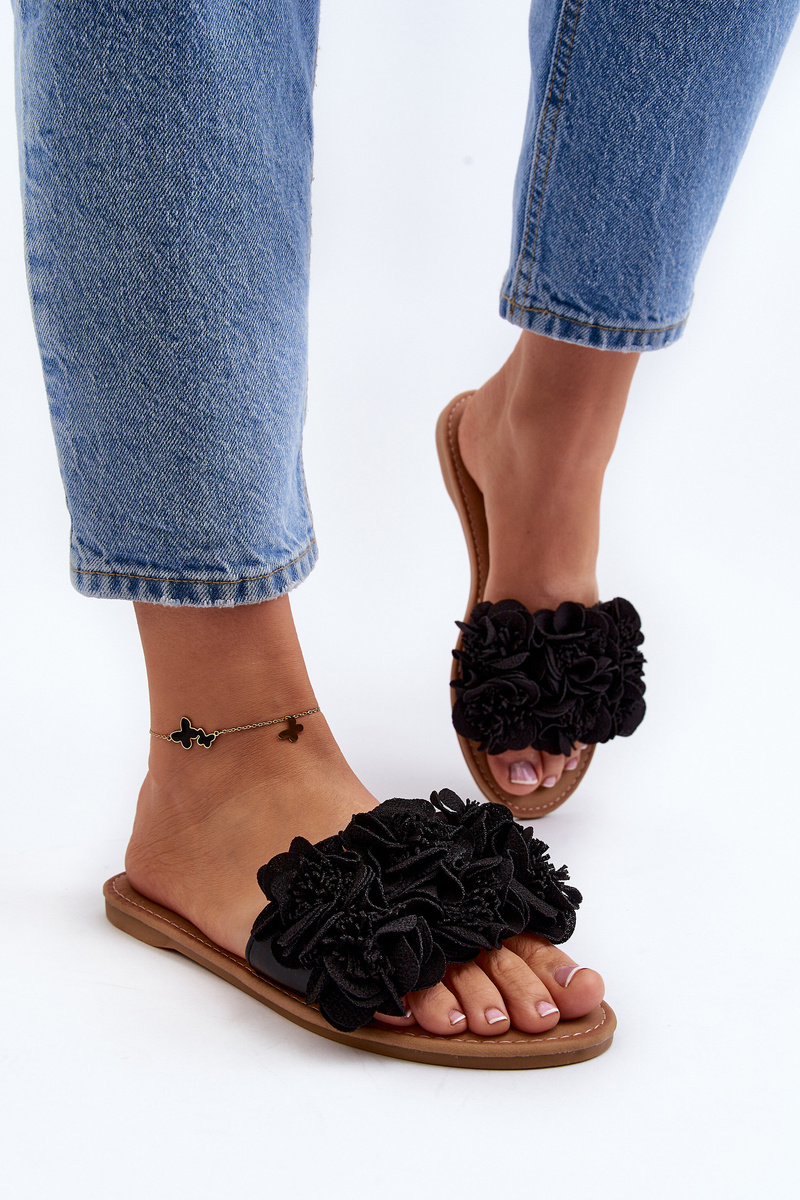 Klapki Damskie Kwiatki Czarne Eelfan CK285P