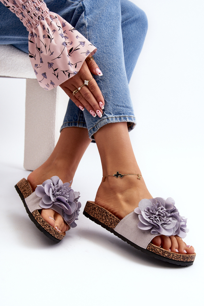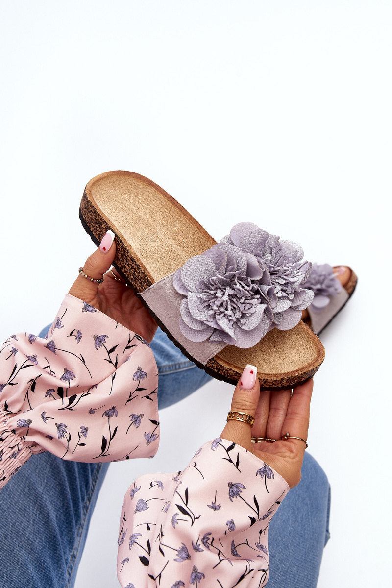 Klapki Damskie Kwiaty Szare Lulania CK290P
