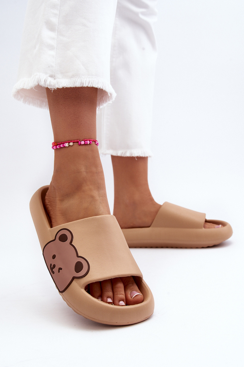 Klapki Damskie Lekkie Piankowe Motyw Misia Ciemnobeżowe Parisso BG-129