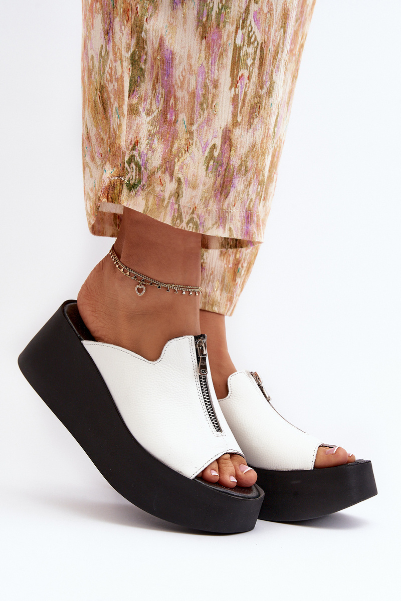Klapki Damskie Masywna Platforma Suwak Białe Zazoo 2916