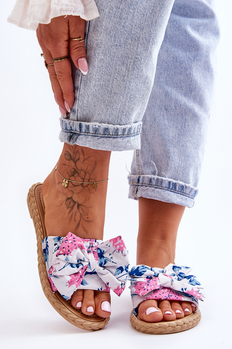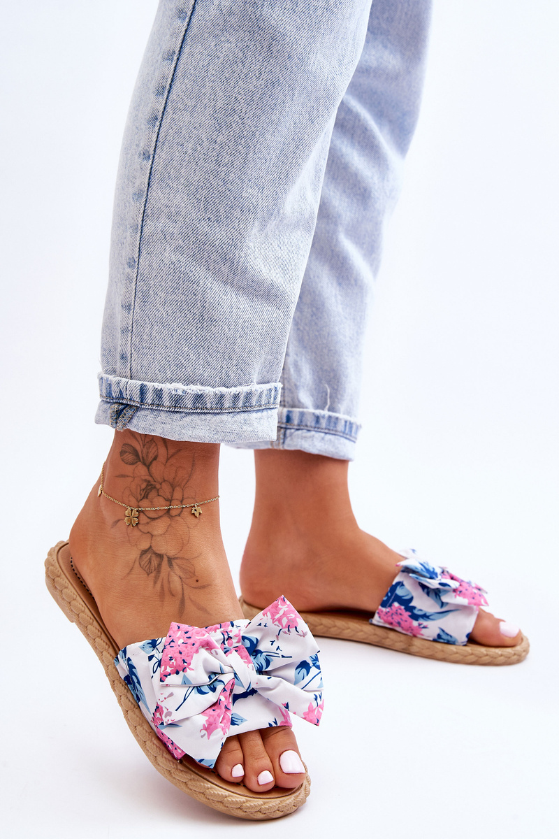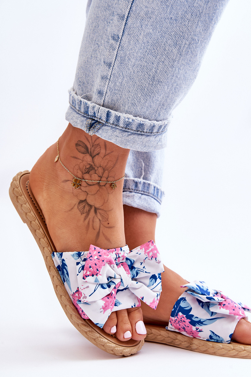 Klapki Damskie Materiałowa Kokarda Białe Blossom