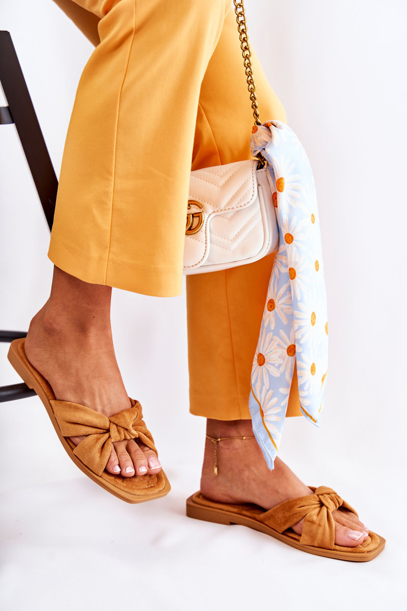 Klapki Damskie Modne Zamsz Camel Lorrie