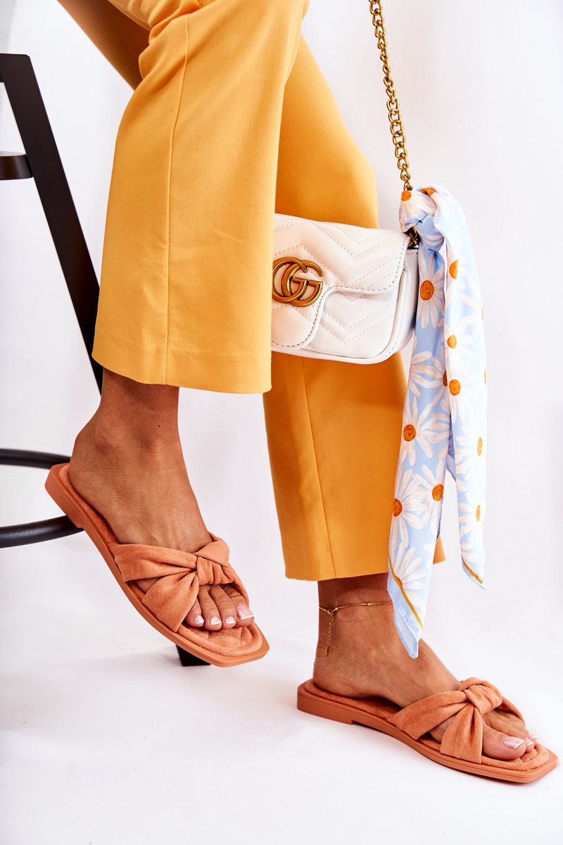 Klapki Damskie Modne Zamsz Pomarańczowe Lorrie