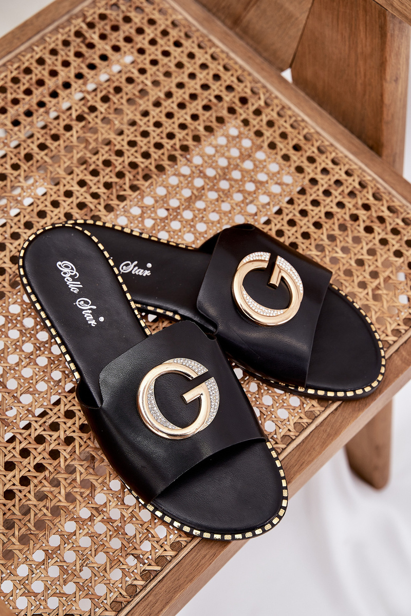 Klapki Damskie Na Płaskim Obcasie Z Ozdobnym Detalem Czarne Oferry