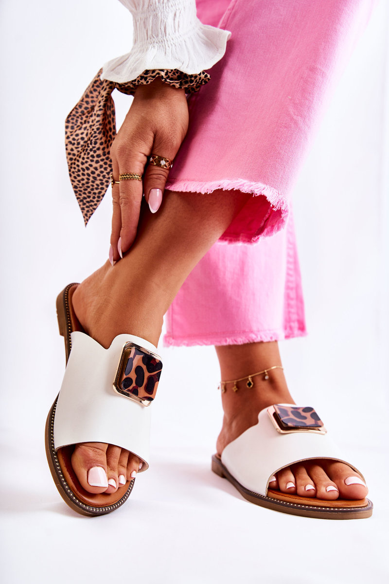 Klapki Damskie Ozdobny Element Białe Leonia