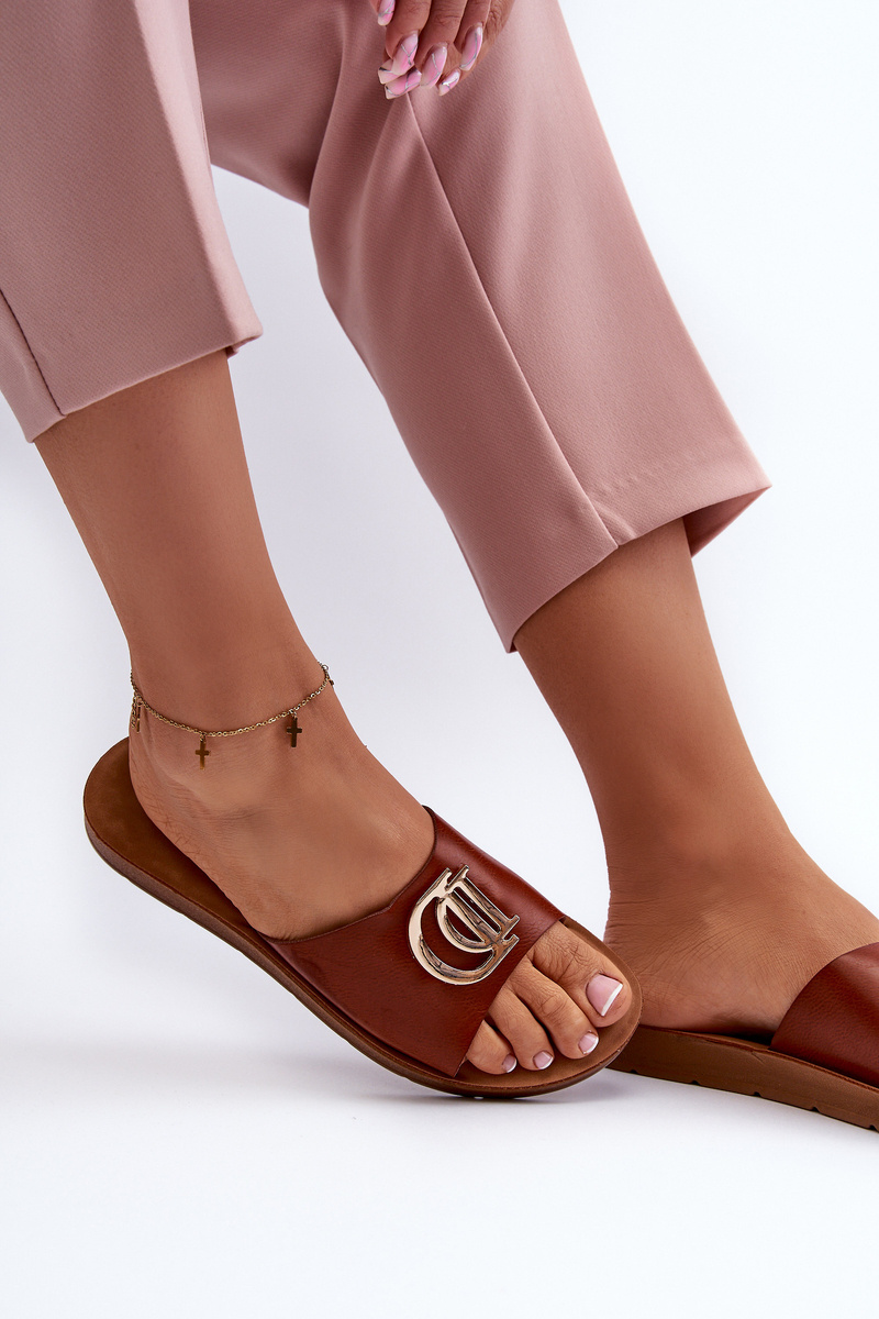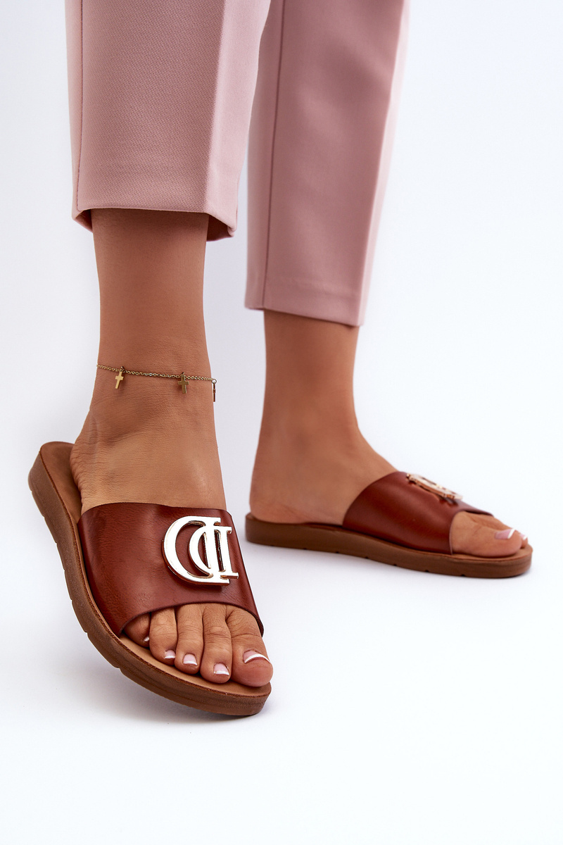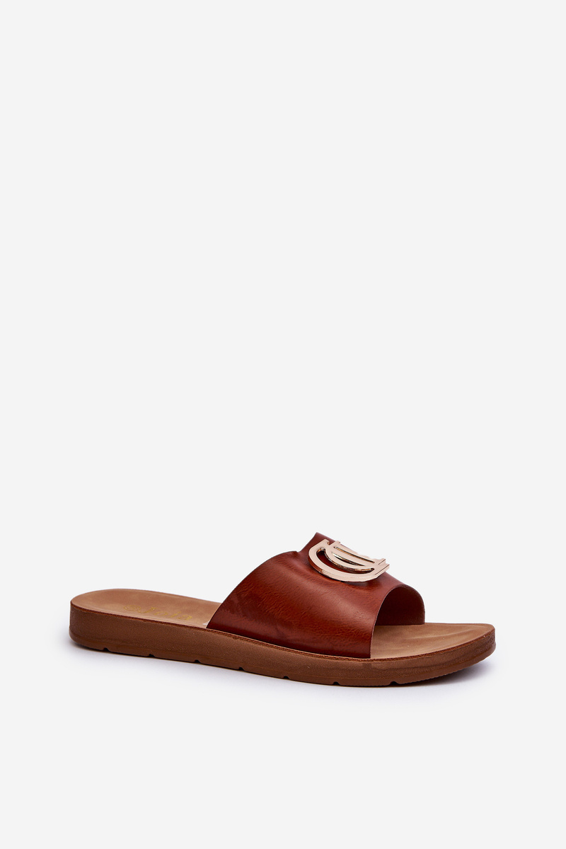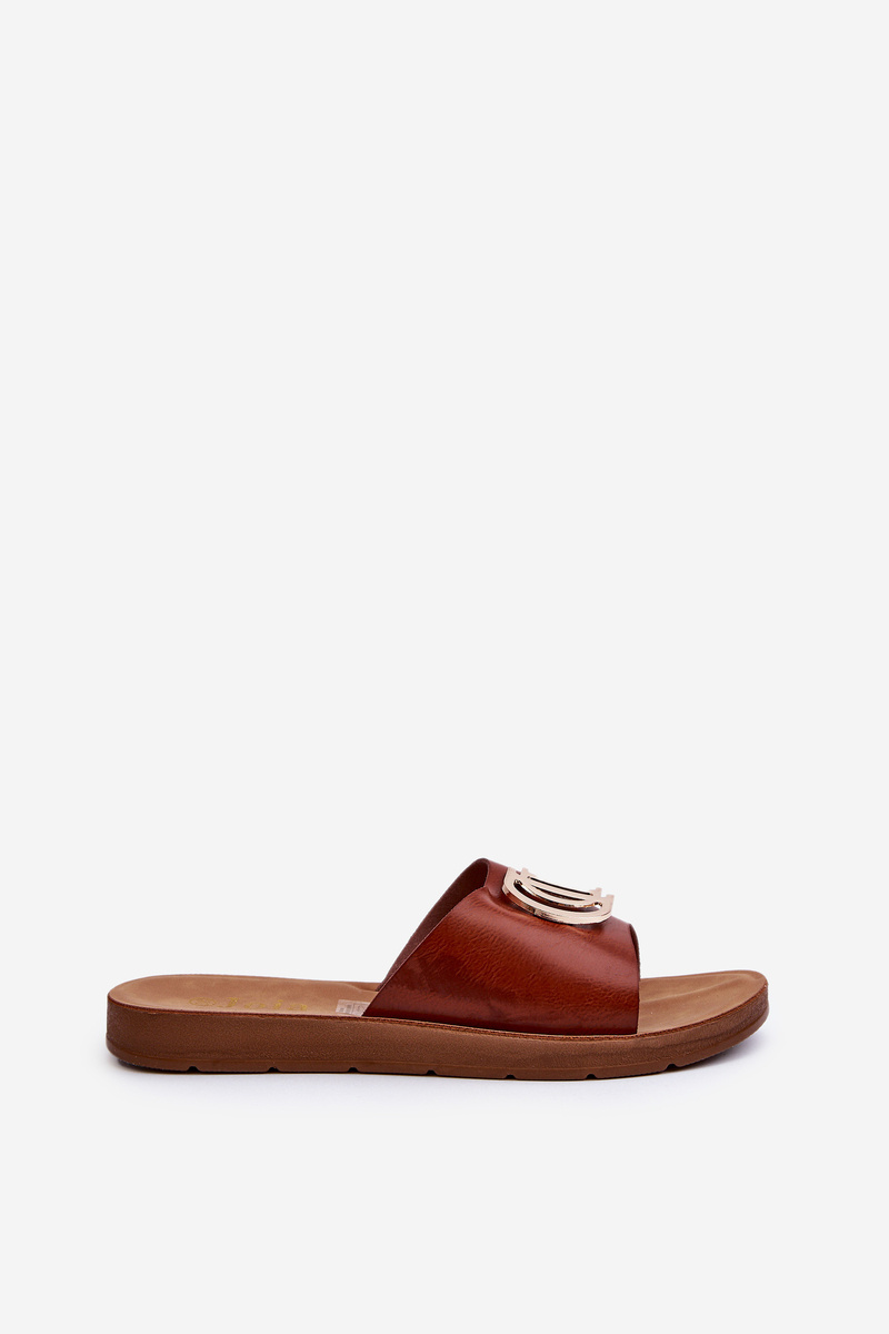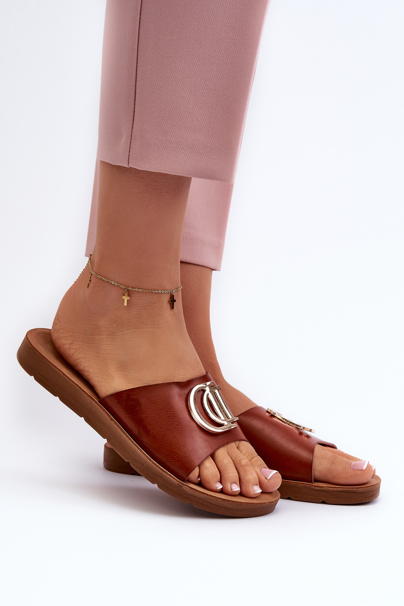 Klapki Damskie Płaska Podeszwa Ozdoba Brązowe Amoonia