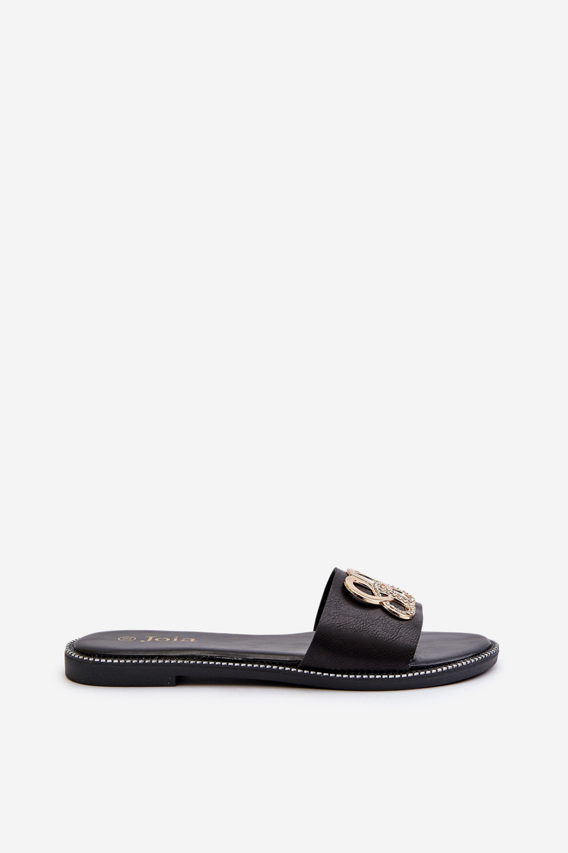 Klapki Damskie Plaski Obcas Eko Skóra Ozdoba Czarne Sadria W-153