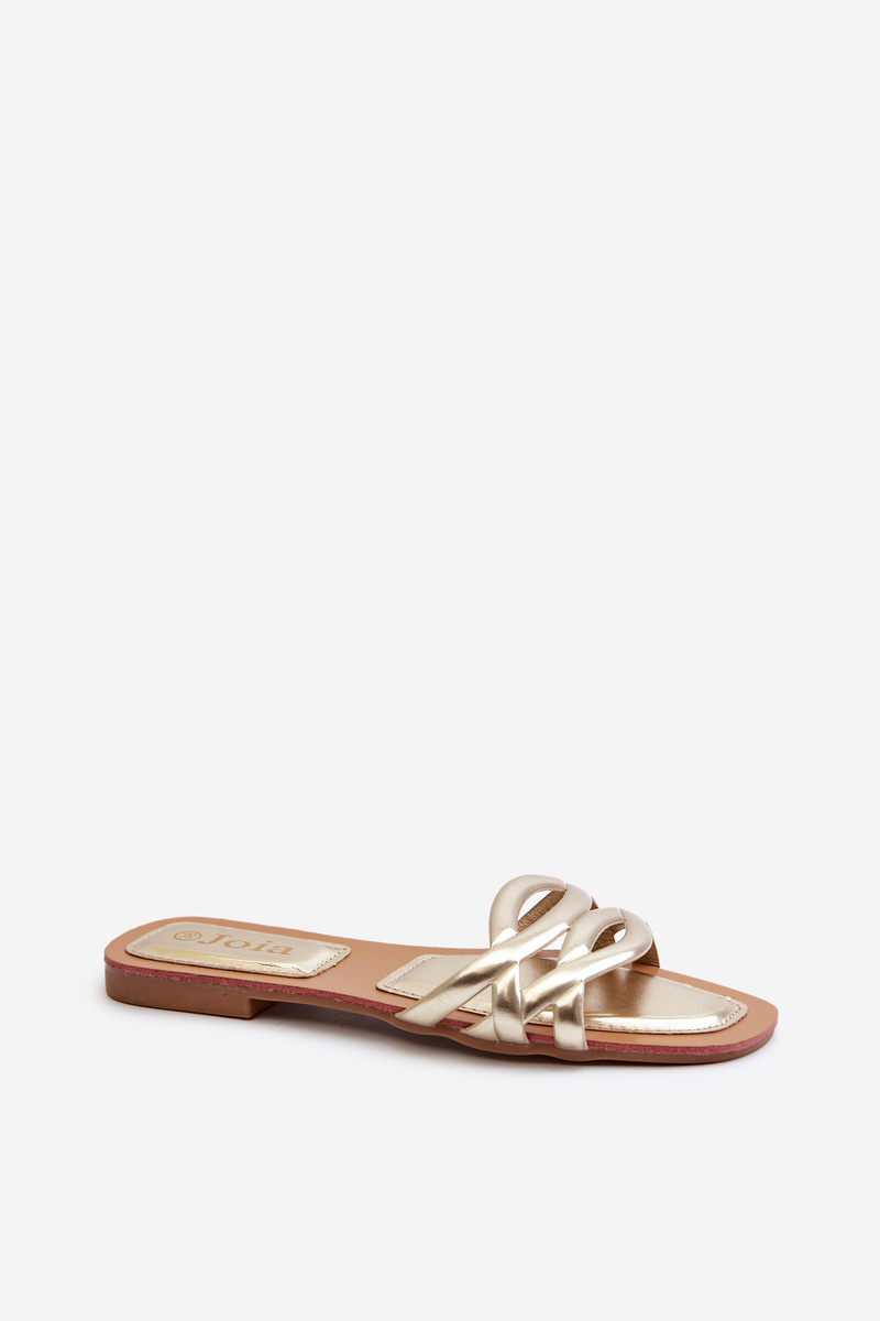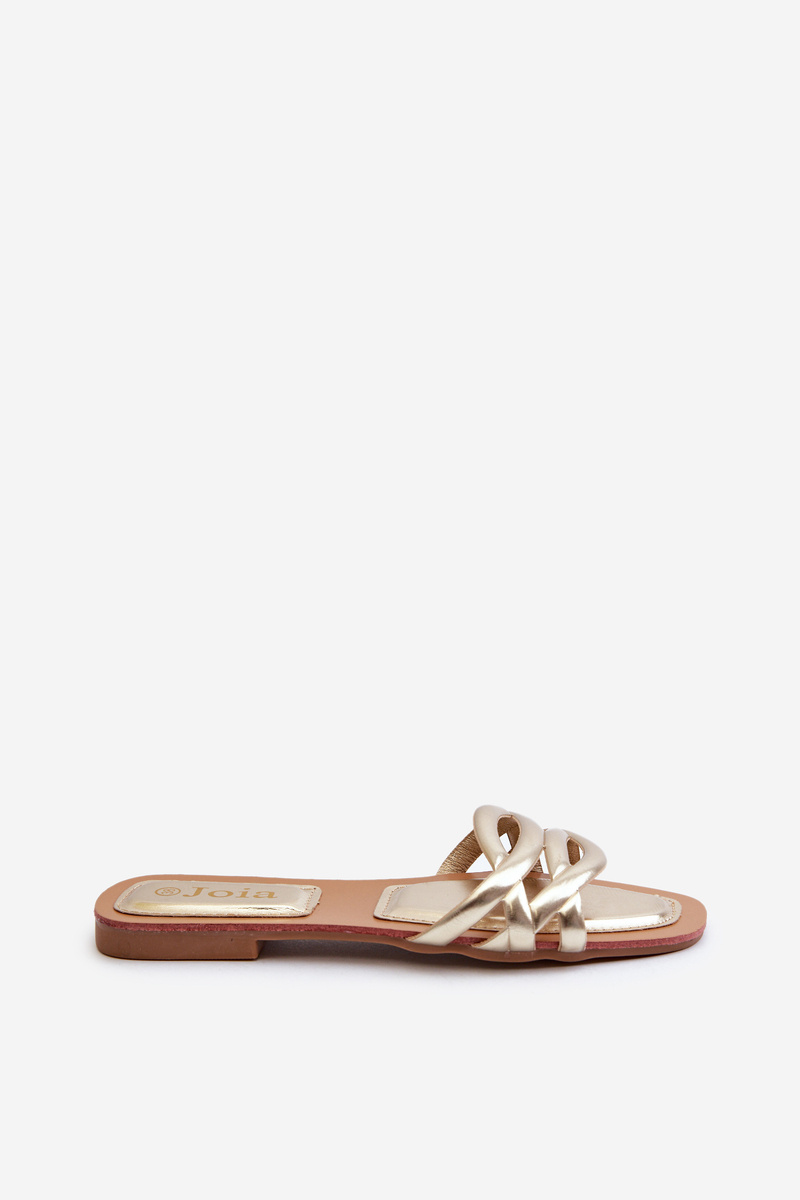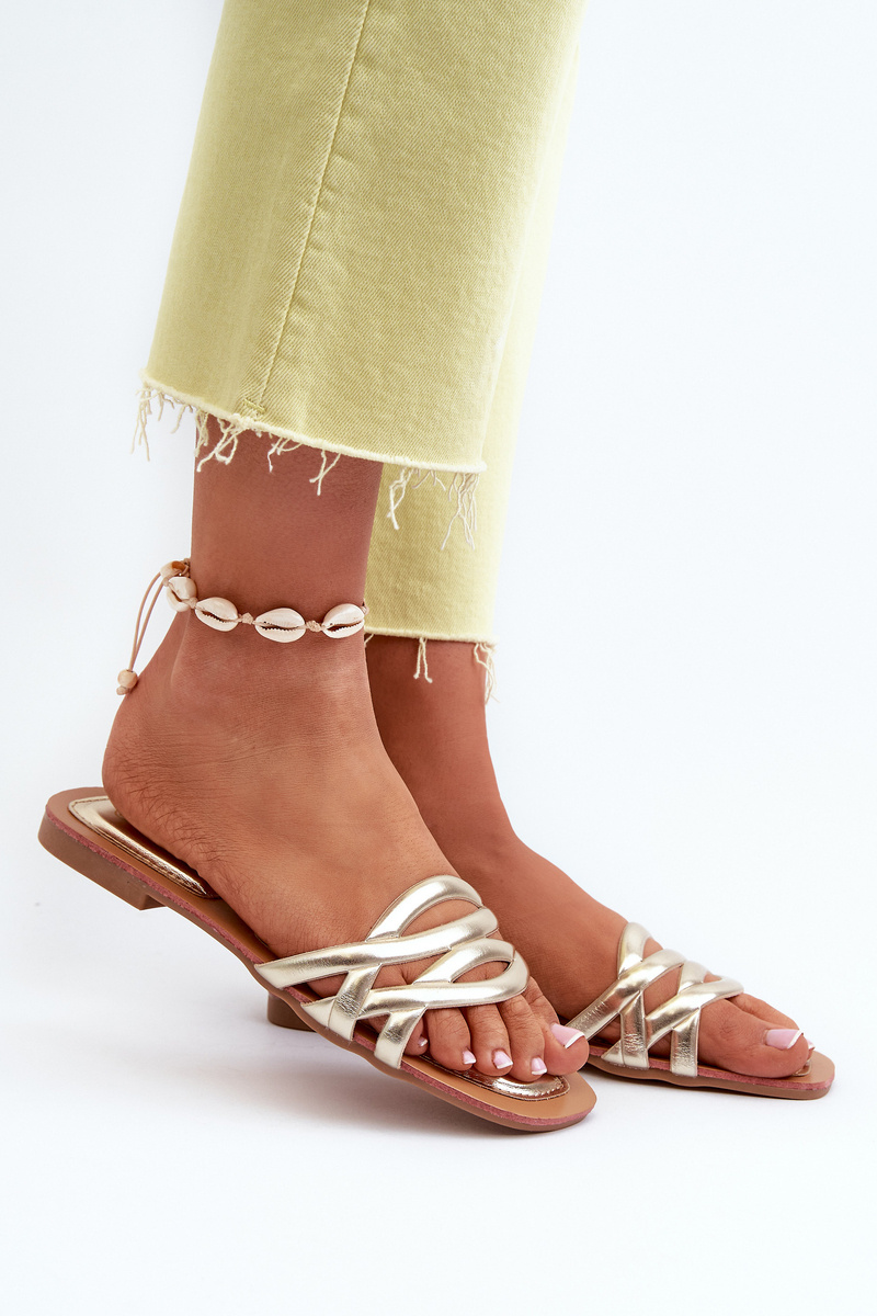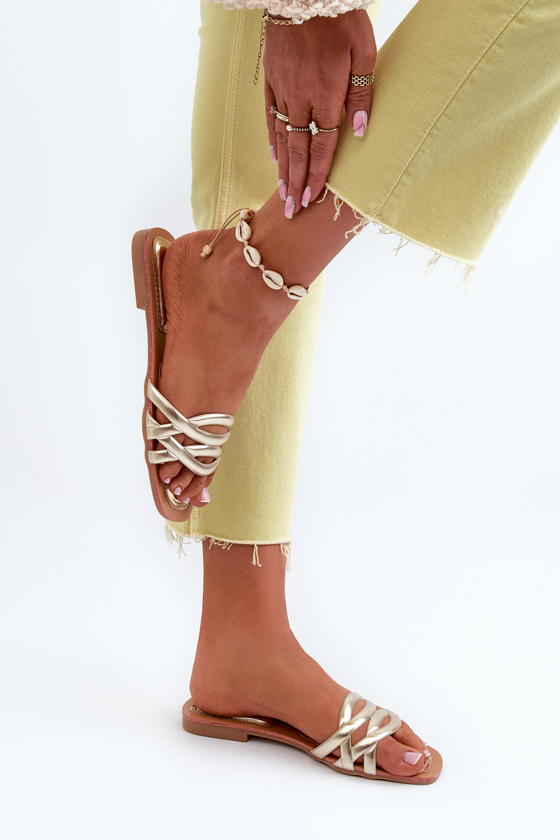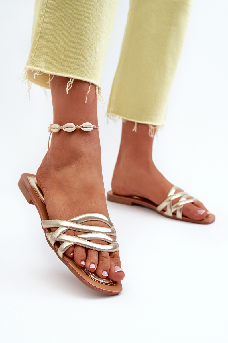 Klapki Damskie Płaski Obcas Eko Skóra Złote Moldela W-159