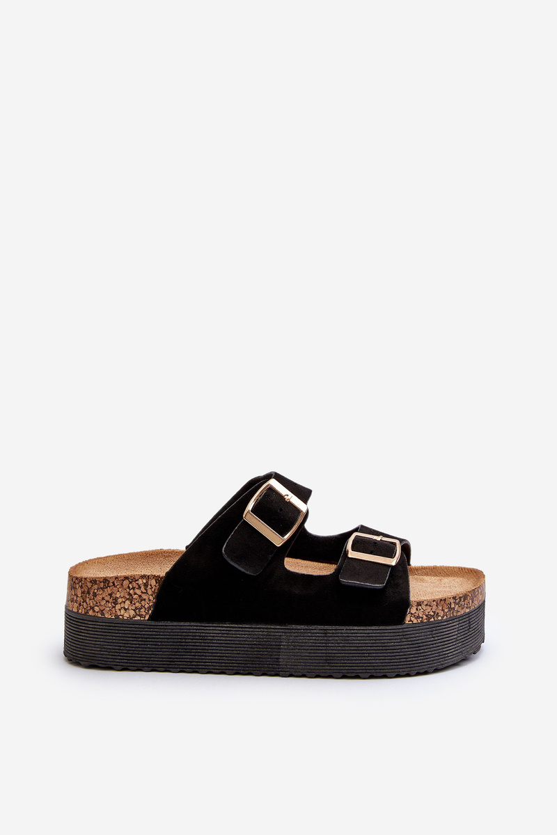 Klapki Damskie Platforma Klamry Czarne Lolpey