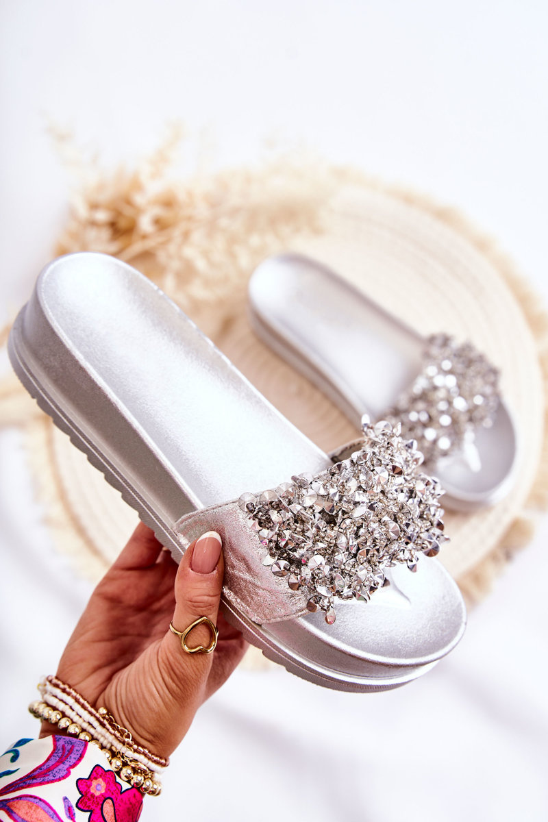 Klapki Damskie Platforma Ozdoby Srebrne Almina