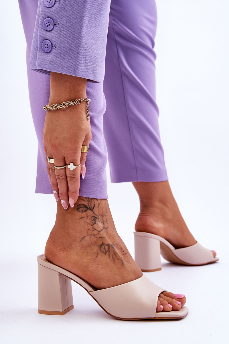 Klasyczne klapki o modnym fasonie pasują do wielu stylizacji! Idealne dla każdej kobiety ceniącej sobie komfort i wygodę na co dzień. Idealne na cieplejsze dni. Wykonane z wierzchu z eko skóry. Klapki posiadają wygodną wkładkę z eko skóry. Model klasycznie wsuwany. Klapki zostały osadzone na stabilnym obcasie w postaci słupka. Klasyczny, gładki model, który powinnaś mieć!