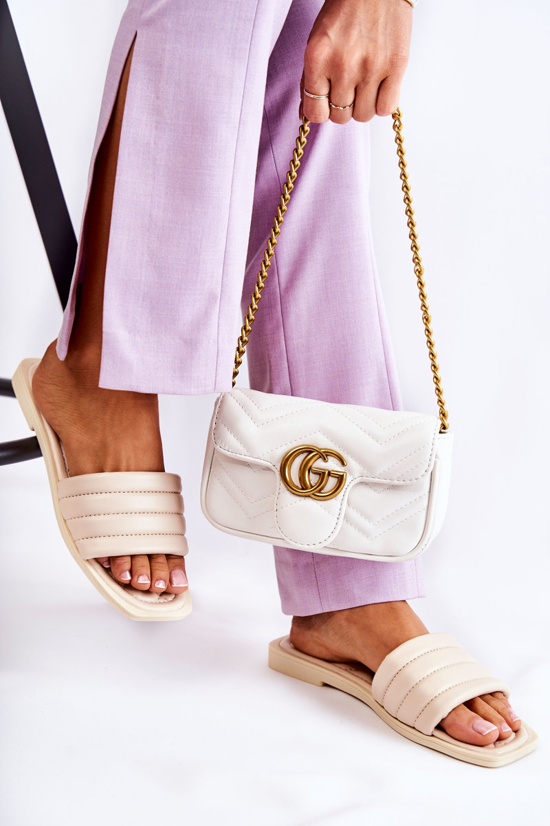 Klapki Damskie Skóra Pikowanie Beżowe Raula