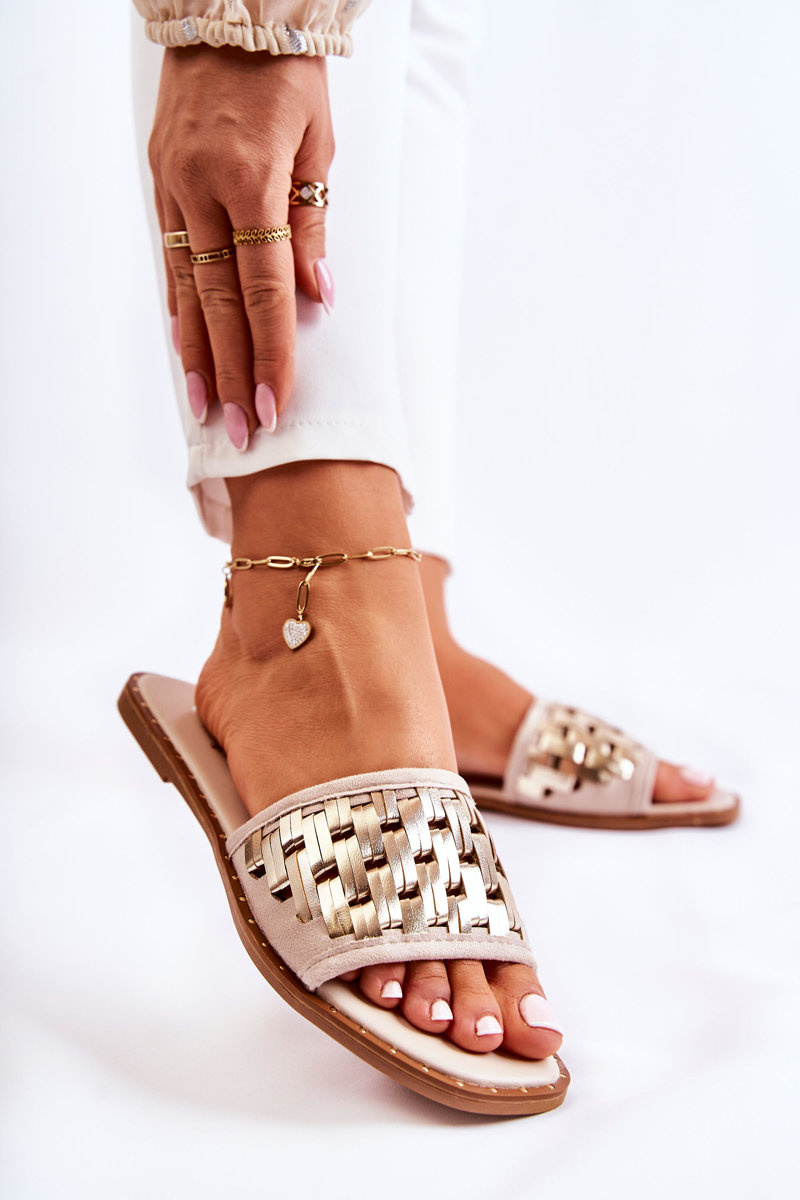 Klapki Damskie Skóra Płaski Obcas Beżowe Hollis