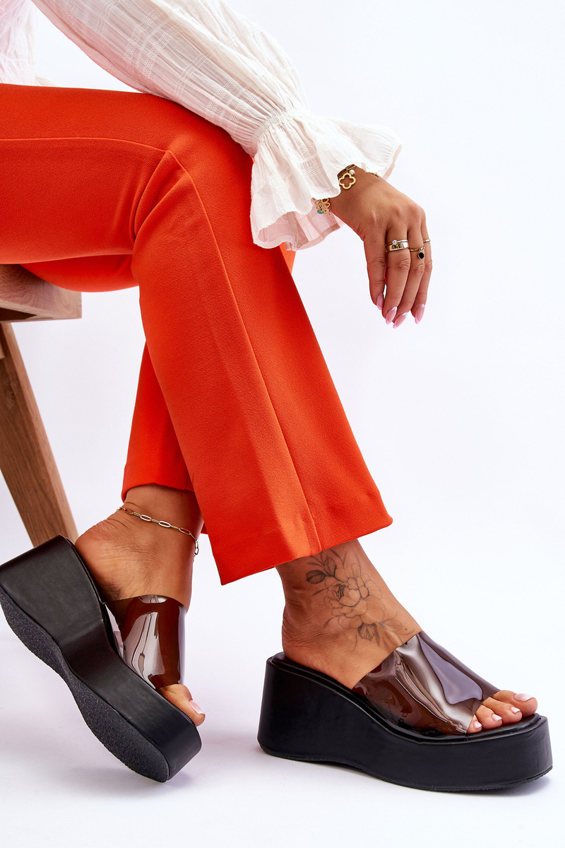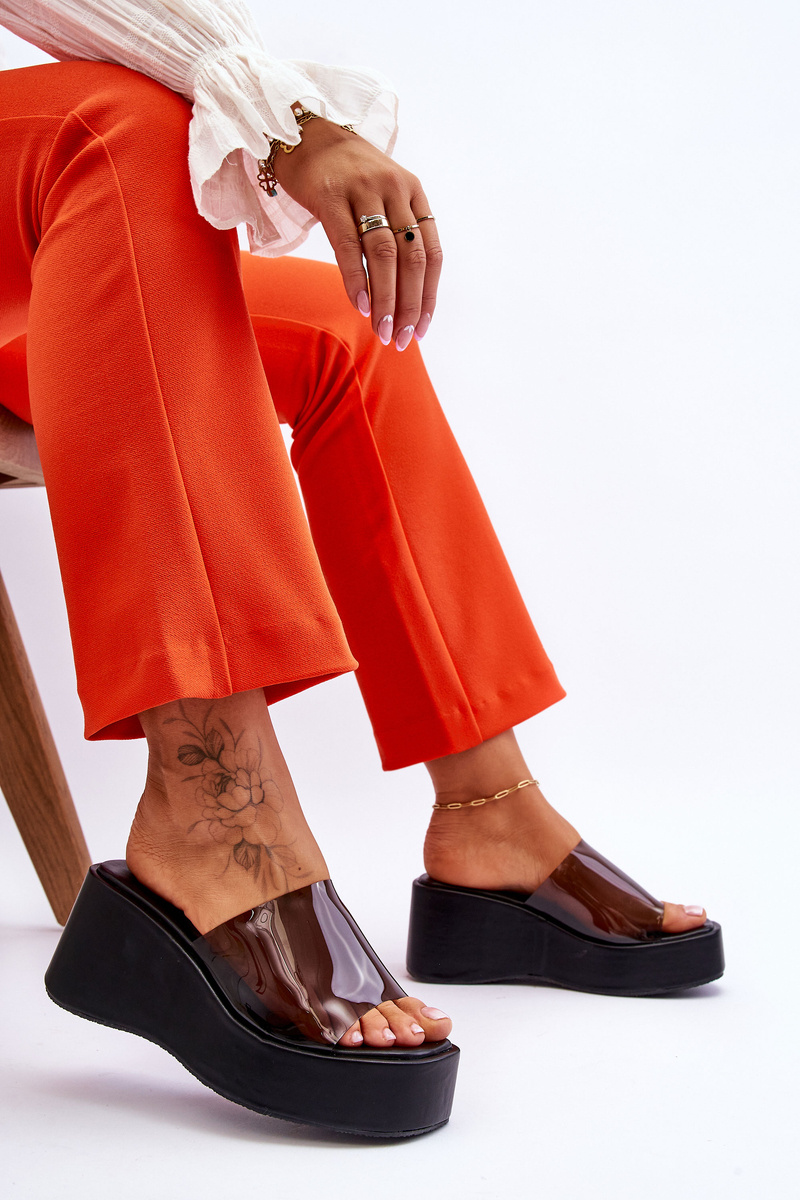 Klapki Damskie Transparentne Koturn Czarne Eliane