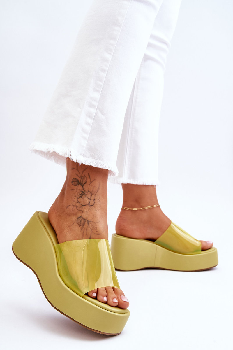 Klapki Damskie Transparentne Koturn Jasnozielone Eliane