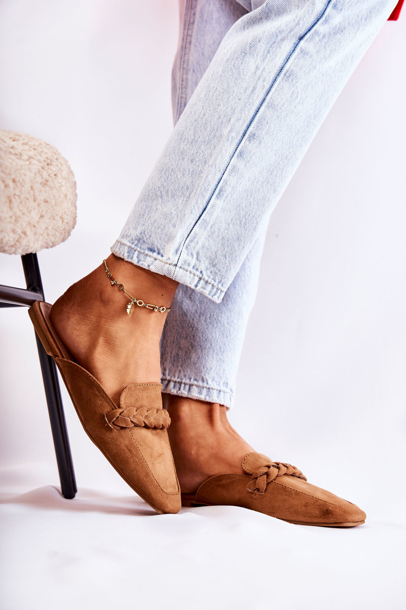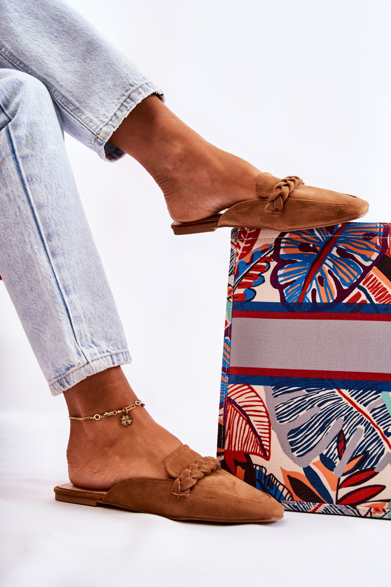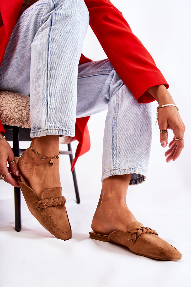 Klapki Damskie Wsuwane Zamszowe Beżowe Olena