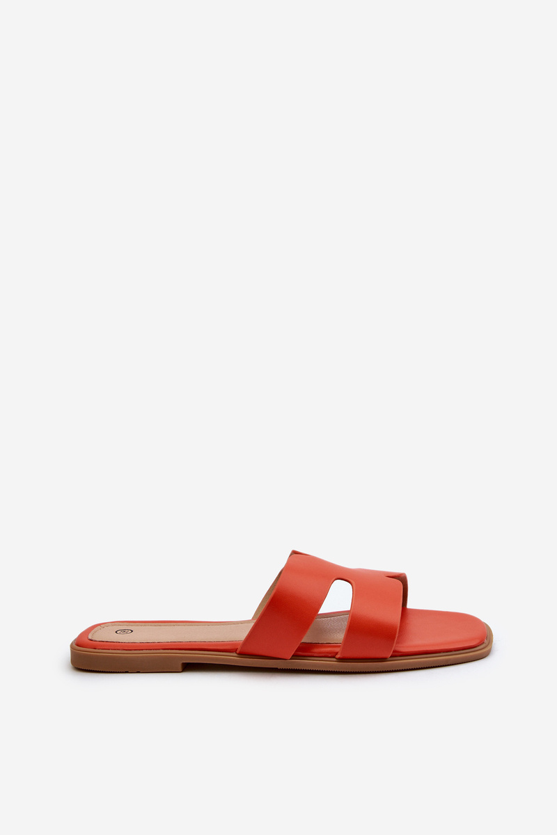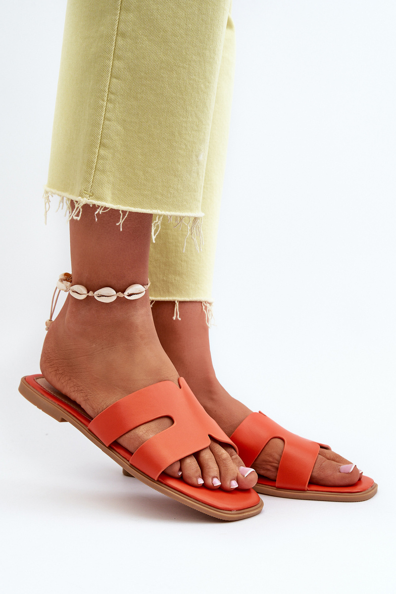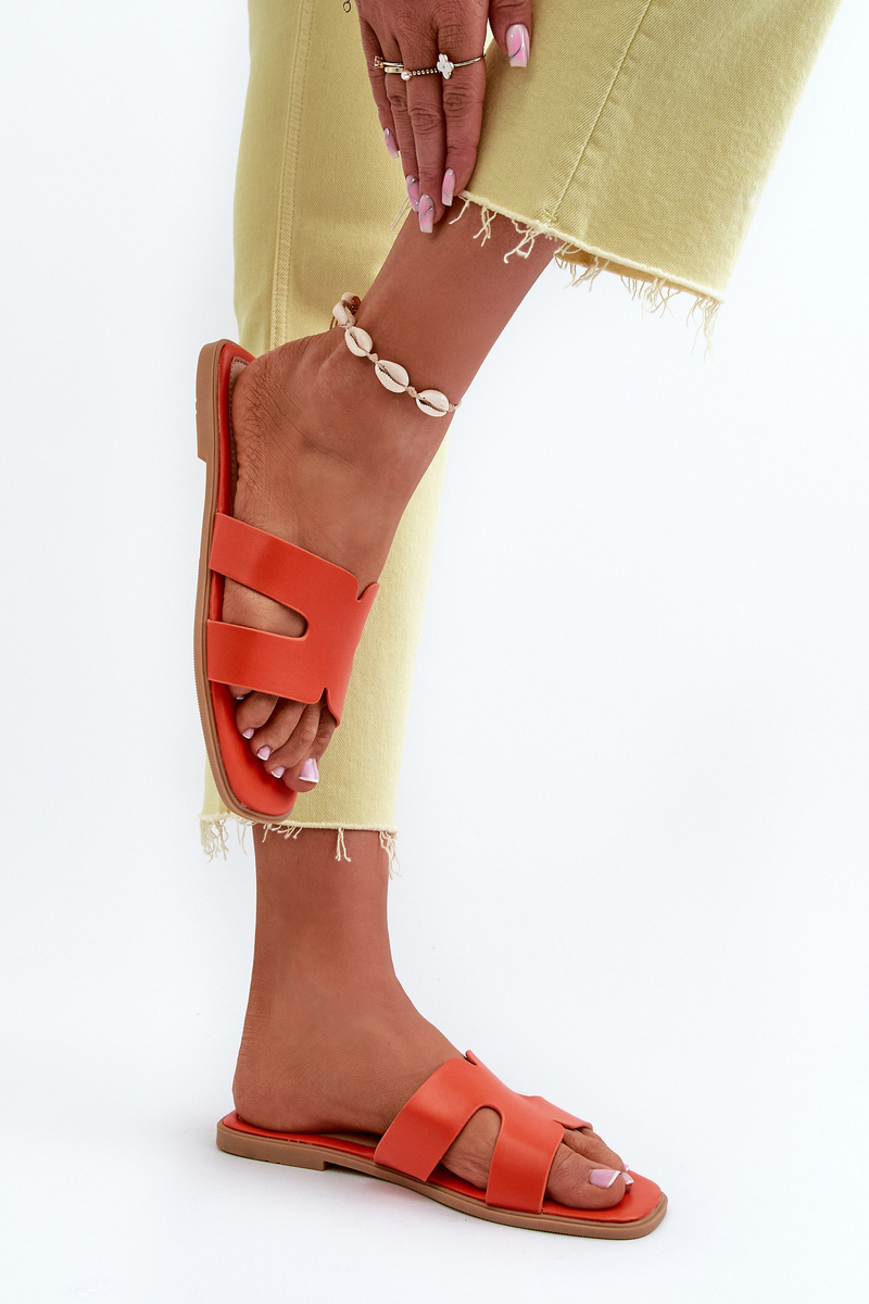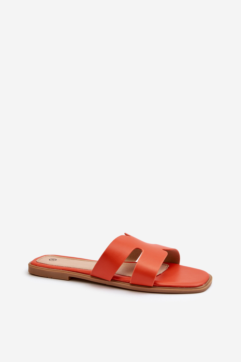 Klapki Damskie Wycięcia Eko Skórzane Pomarańczowe Fiviama SS-223