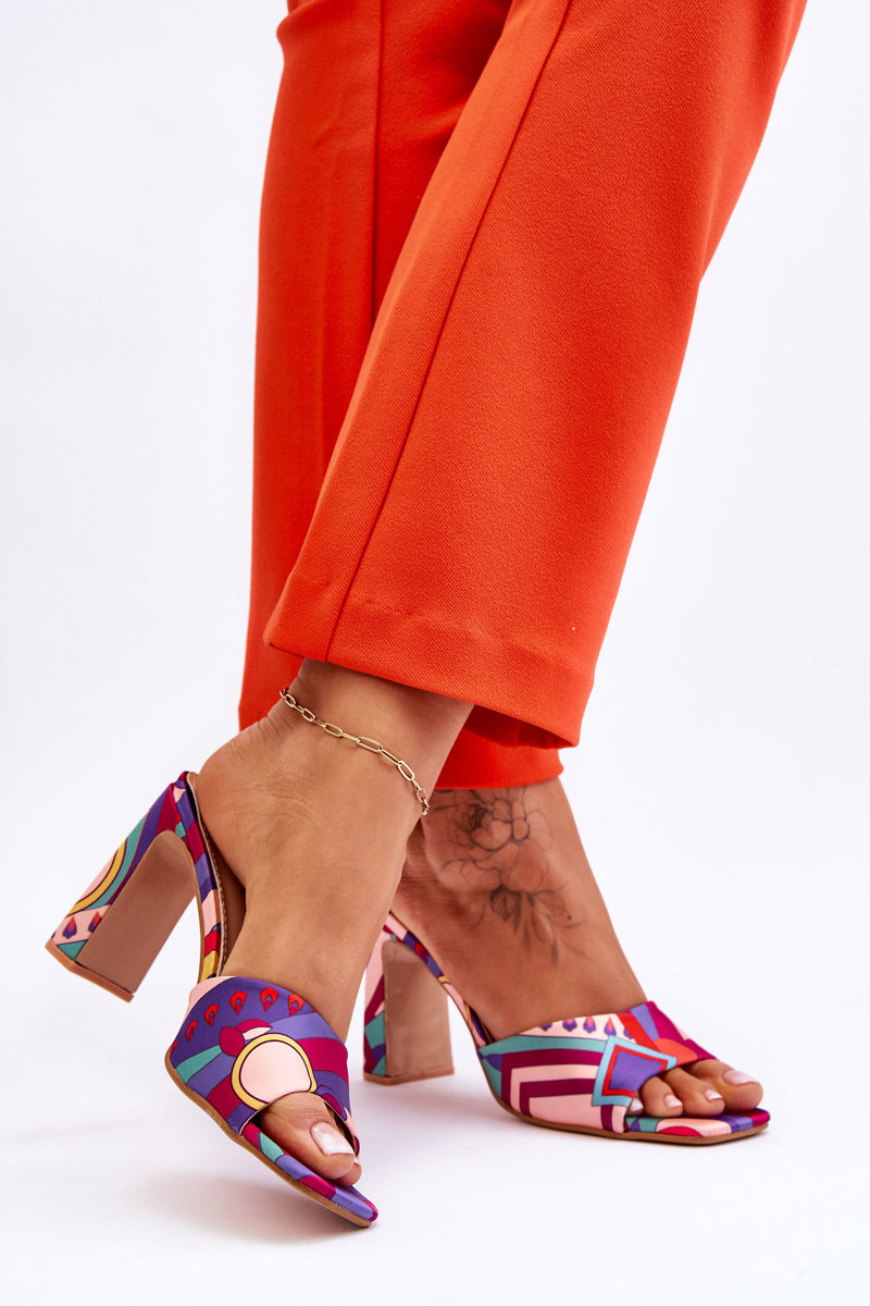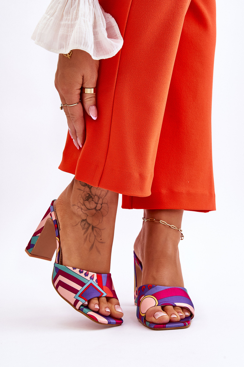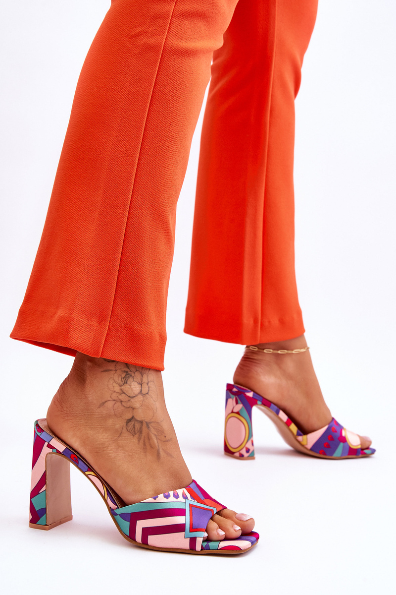 Klapki Damskie Wzory Obcas Fioletowe Adelise