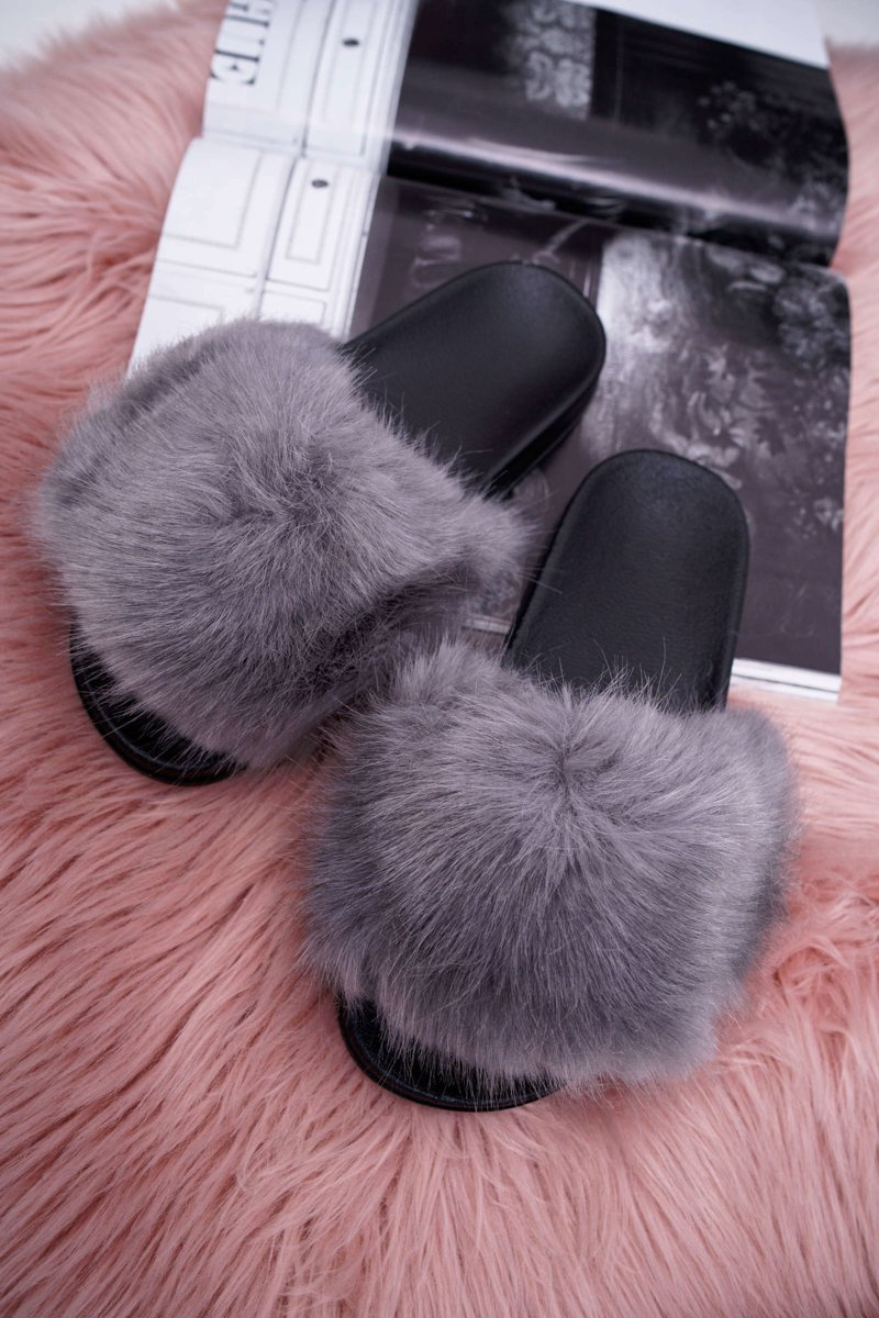 Klapki Damskie z Futerkiem Szaro Czarne NiceFur