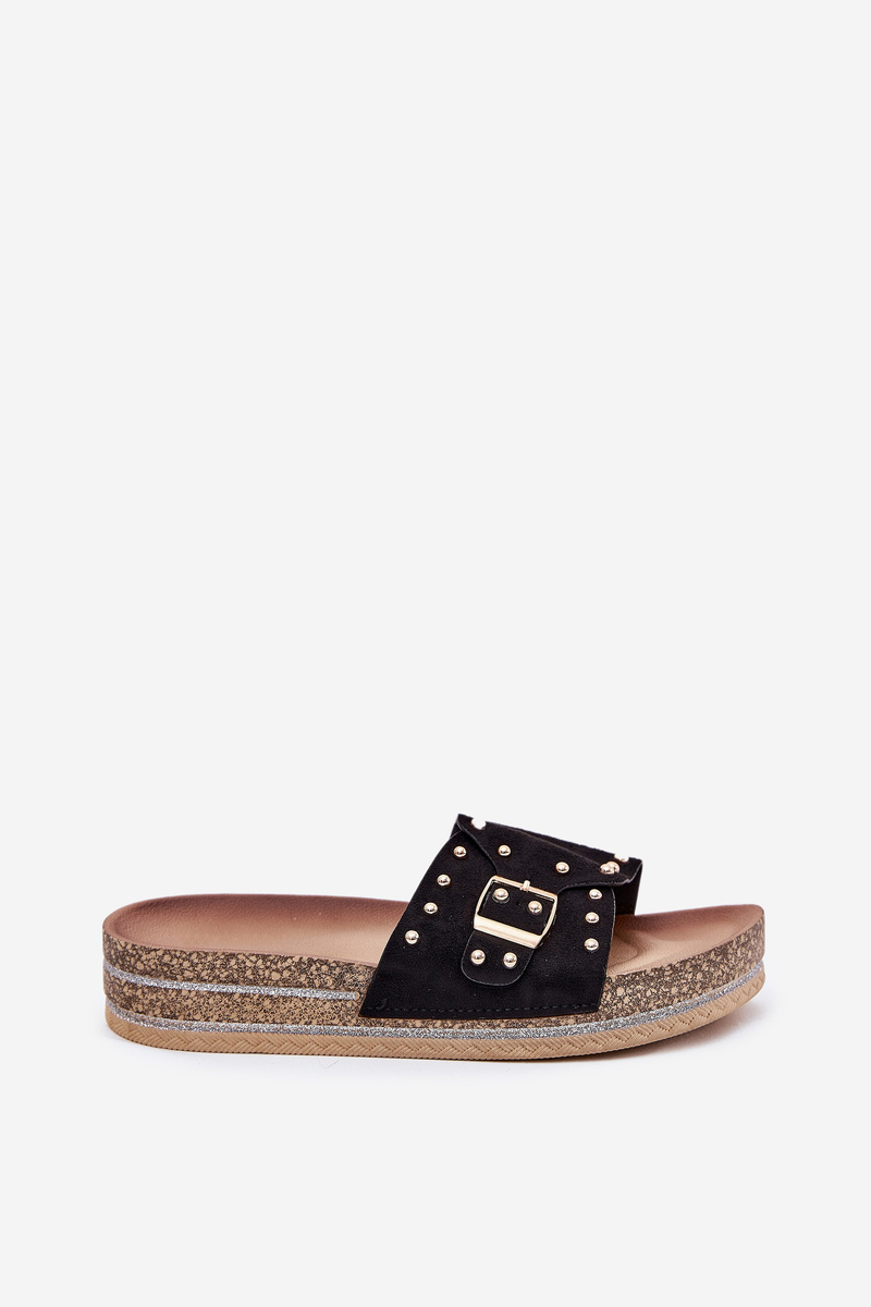 Klapki Damskie Z Klamrą I Ćwiekami Na Platformie Czarne Nusithia