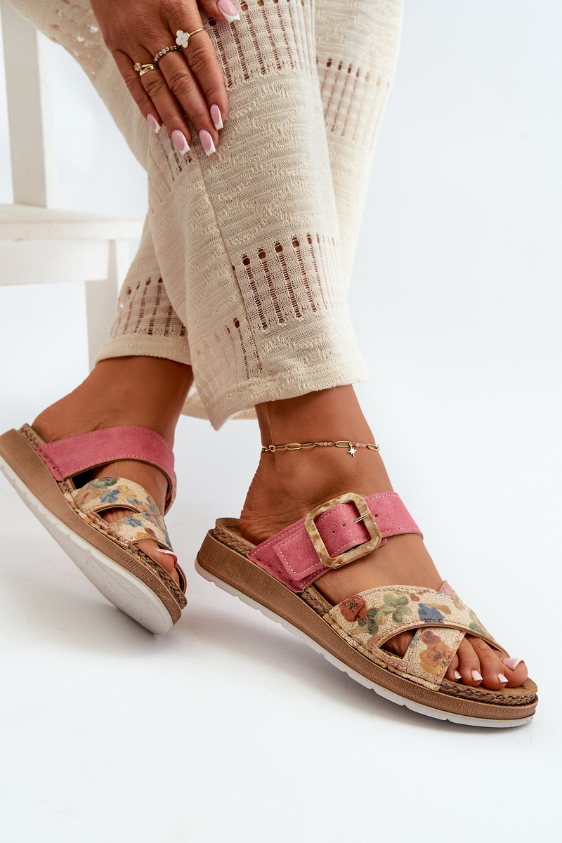 Klapki Damskie Z Klamrą W Kwiaty Wygodne Różowe Inblu GS000051