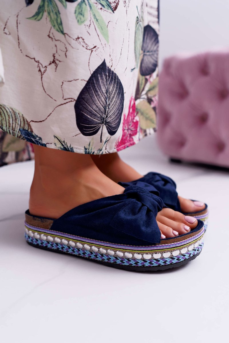 Klapki Damskie Z Kokardami Gruba Podeszwa Granatowe Milady