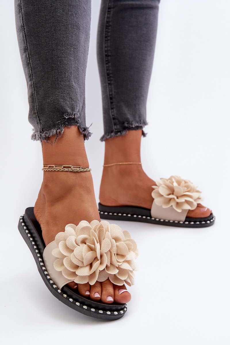Klapki Damskie Z Kwiatami Beżowe Cellanen M360