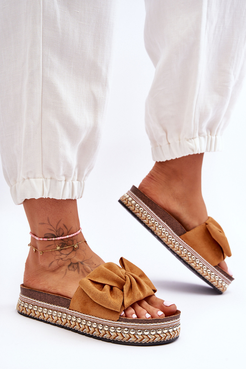 Klapki Damskie Zamsz Kokarda Camel Lauria HD055-16