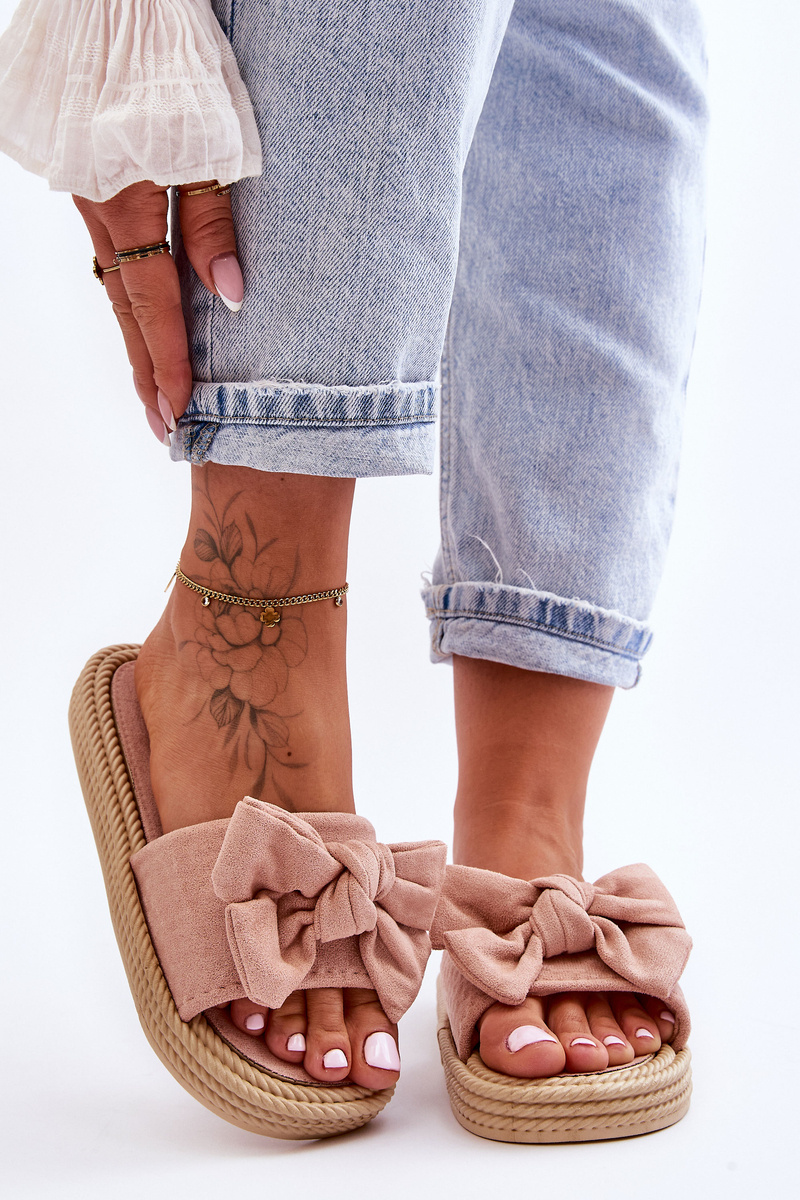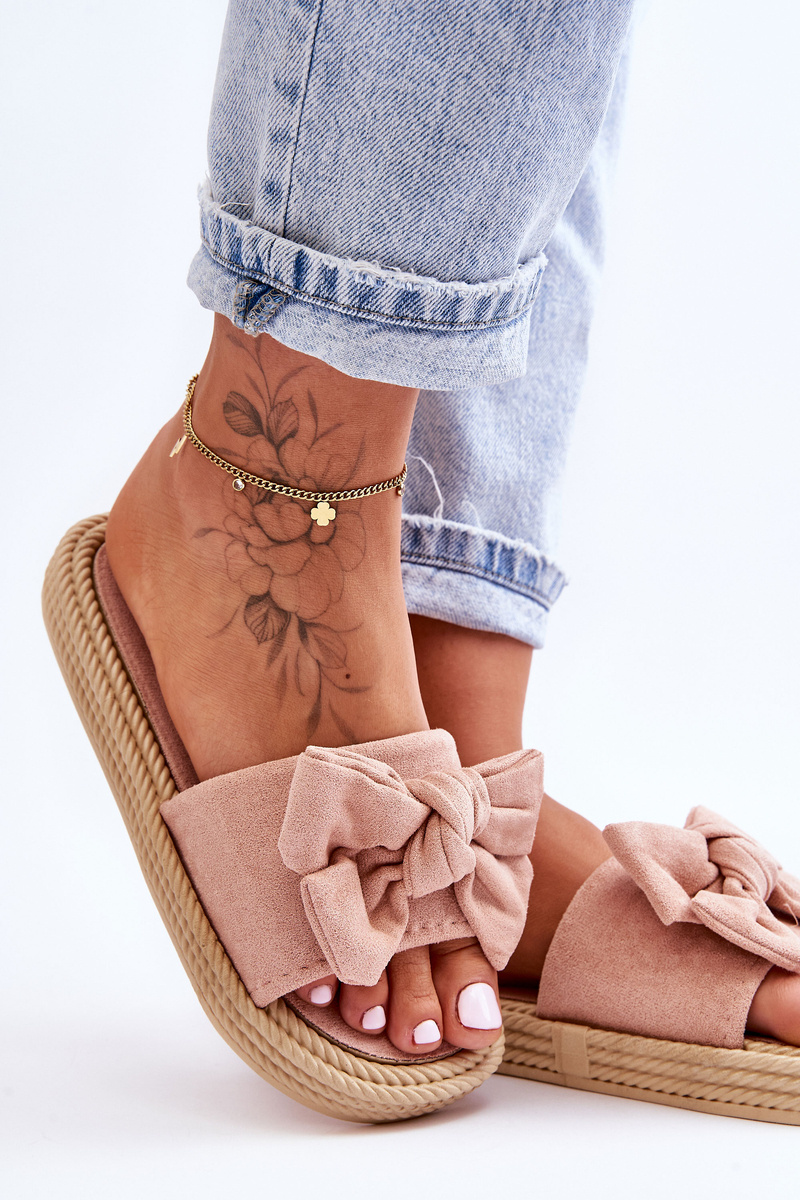 Klapki Damskie Zamsz Kokarda Różowe Fency