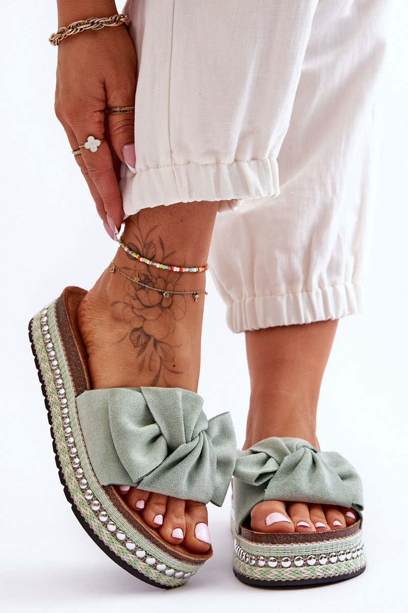 Klapki Damskie Zamsz Kokarda Zielone Lauria HD055-16