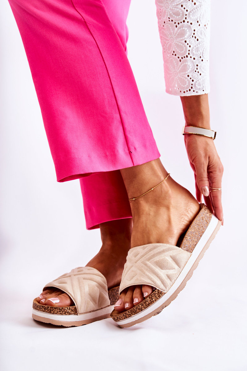 Klapki Damskie Zamsz Masywna Platforma Beżowe Heritta