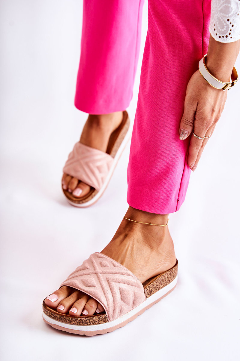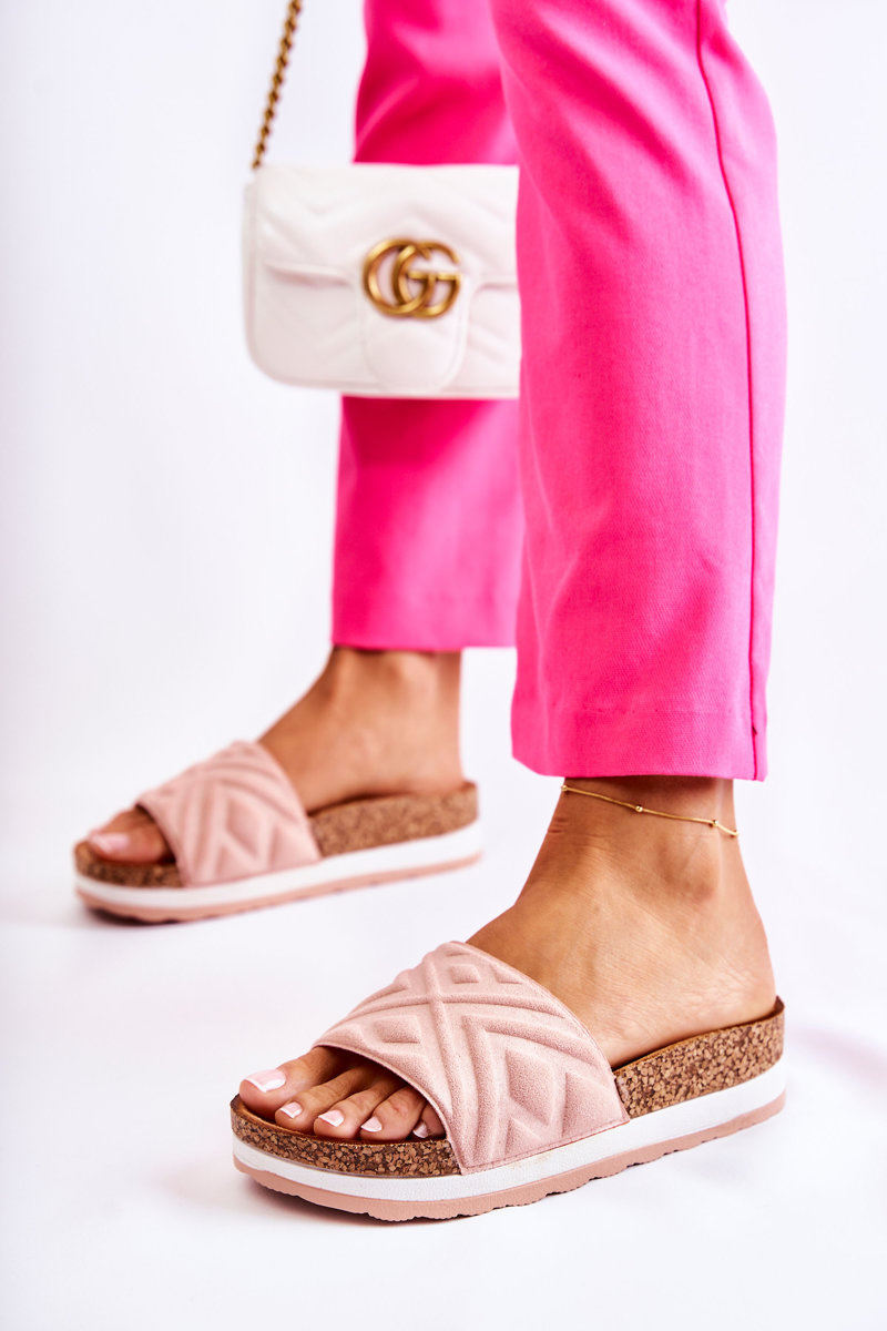 Klapki Damskie Zamsz Masywna Platforma Różowe Heritta