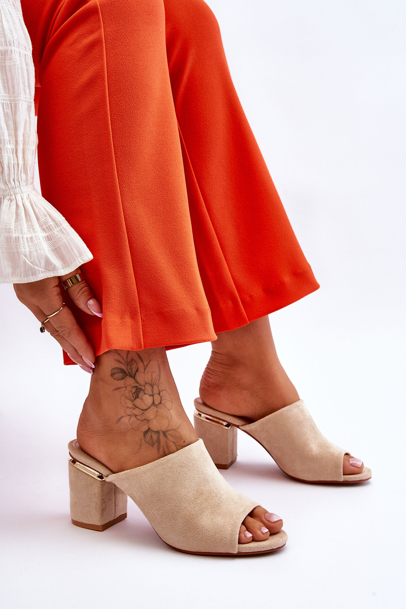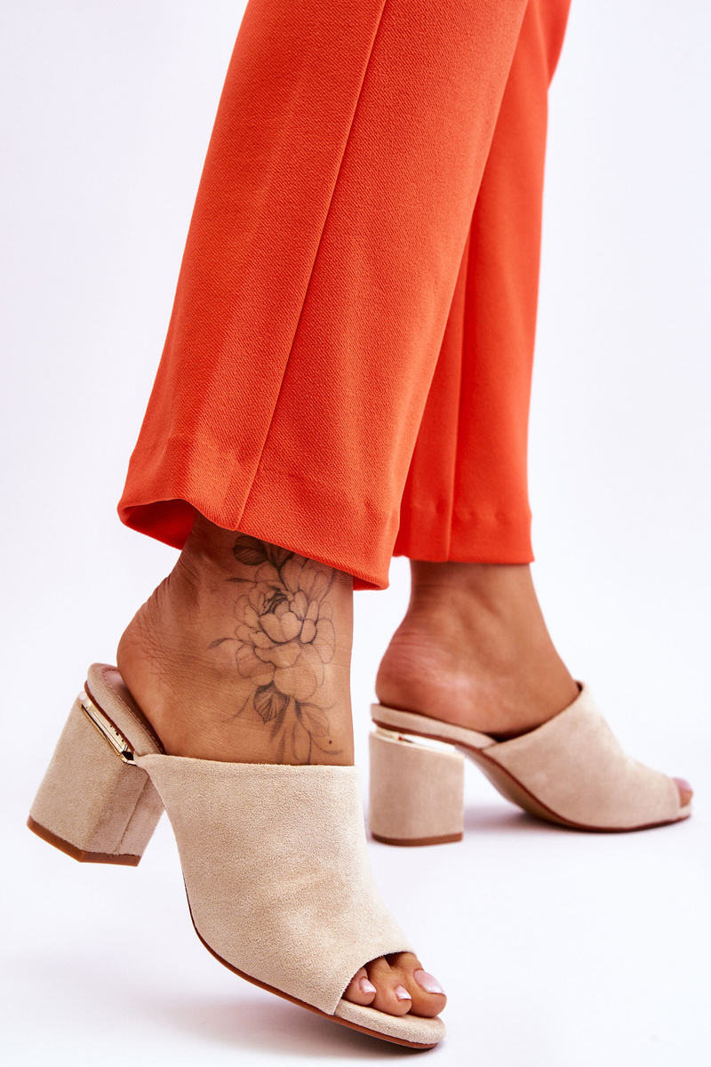 Klapki Damskie Zamsz Obcas Beżowe Carter
