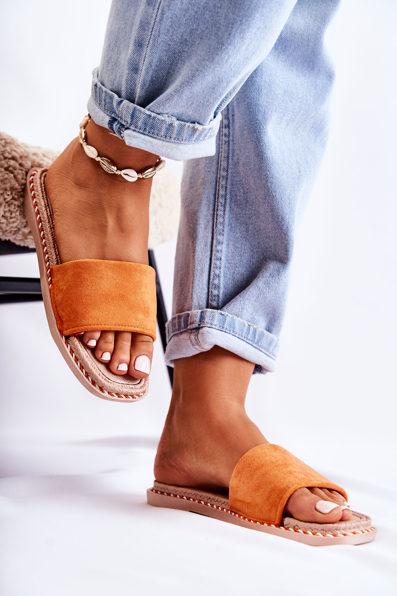 Klapki Damskie Zamsz Pomarańczowe Sunset